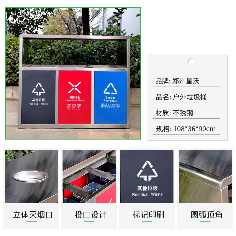 야외 쓰레기통 2 개 3 4 분류 스테인레스 쓰레기통 시립 거리 공원 위생 쓰레기통 제조 업체스토어 가기