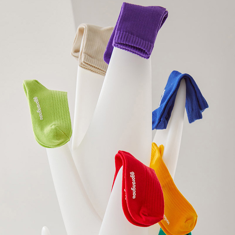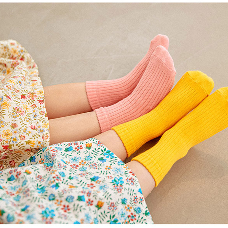 012 색상 단색 순수한 한국 양말 어린이 양말 남아 여아 땀 흡수 패션 봄 가을 겨울 중간 길이 면 양말스토어 가기