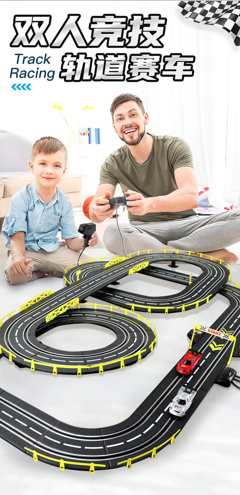 크로스 보더 전기 원격 제어 트랙 레이싱 장난감 대형 수동 전기 원격 제어 더블 트랙 레이스 선물 상자스토어 가기