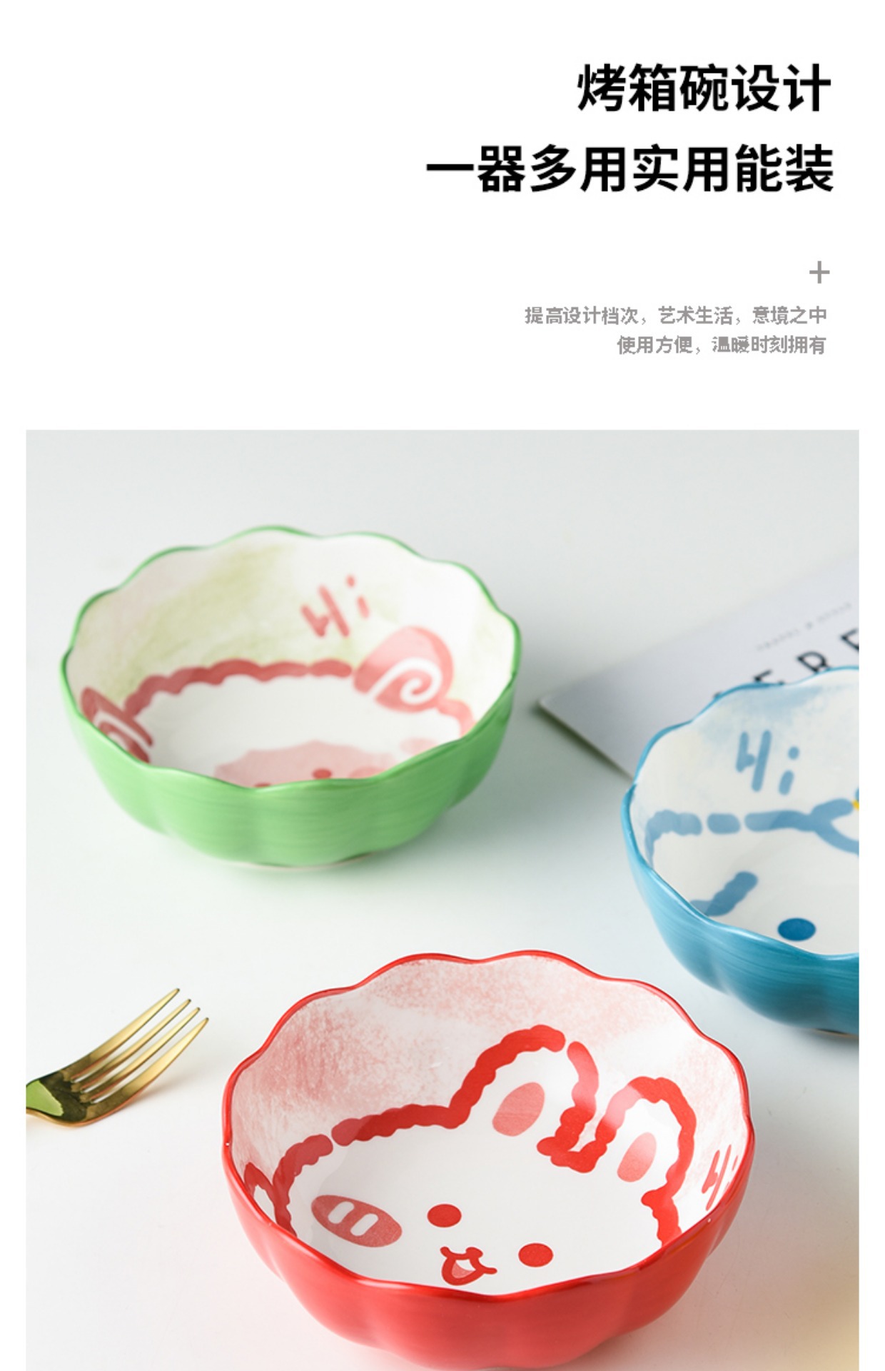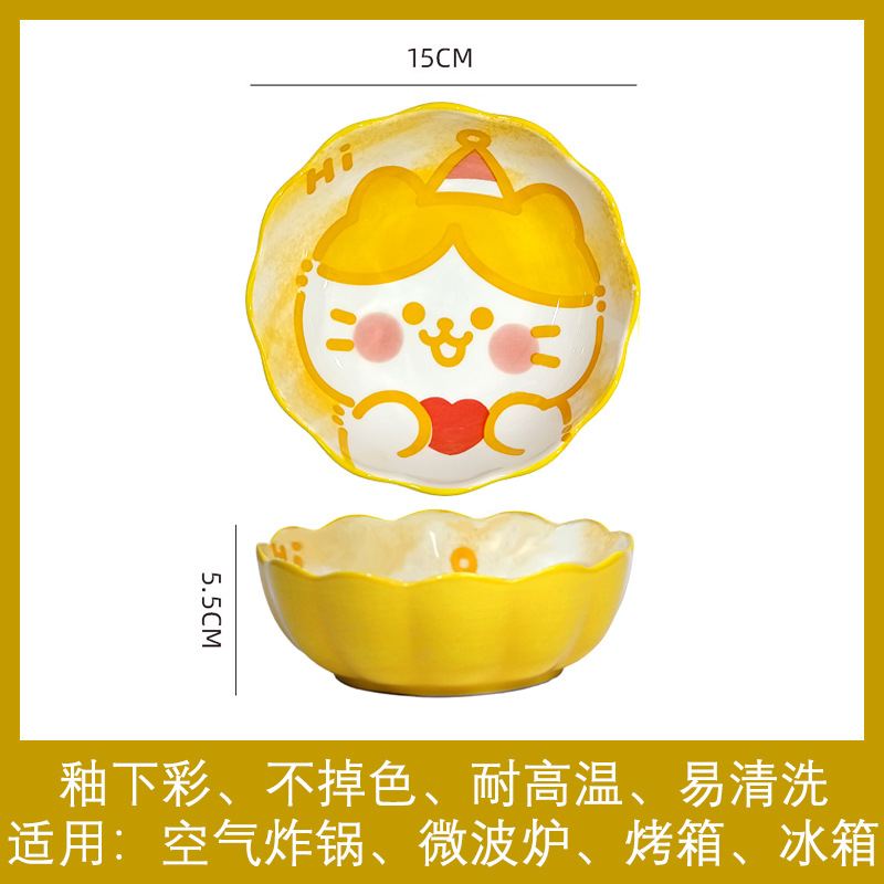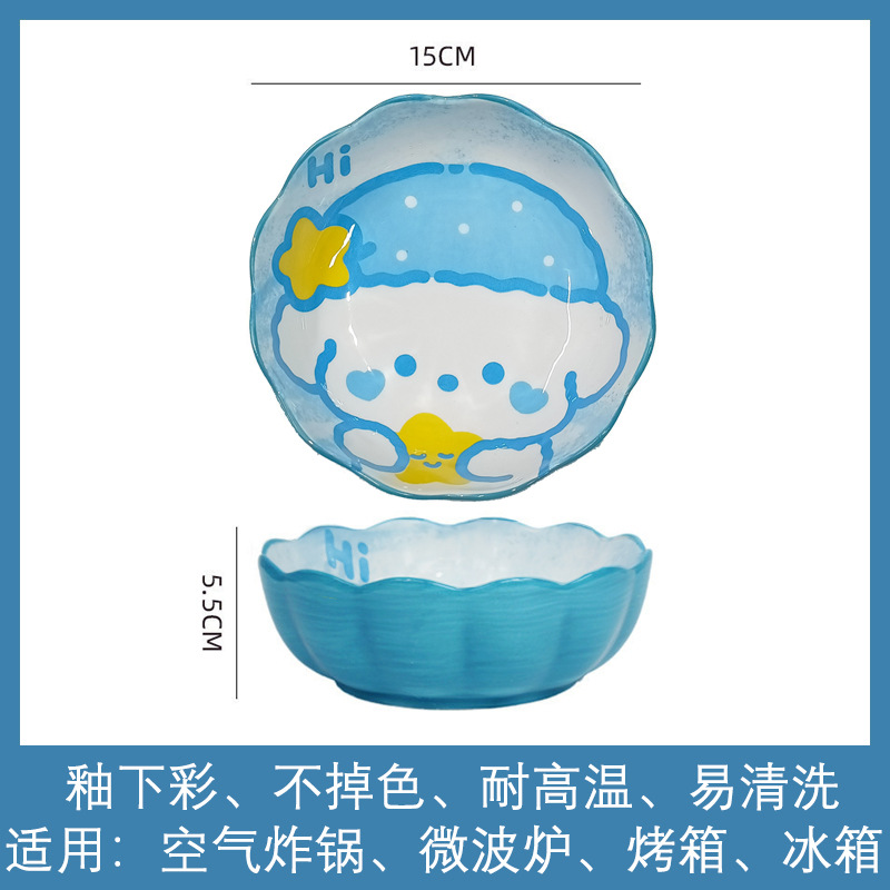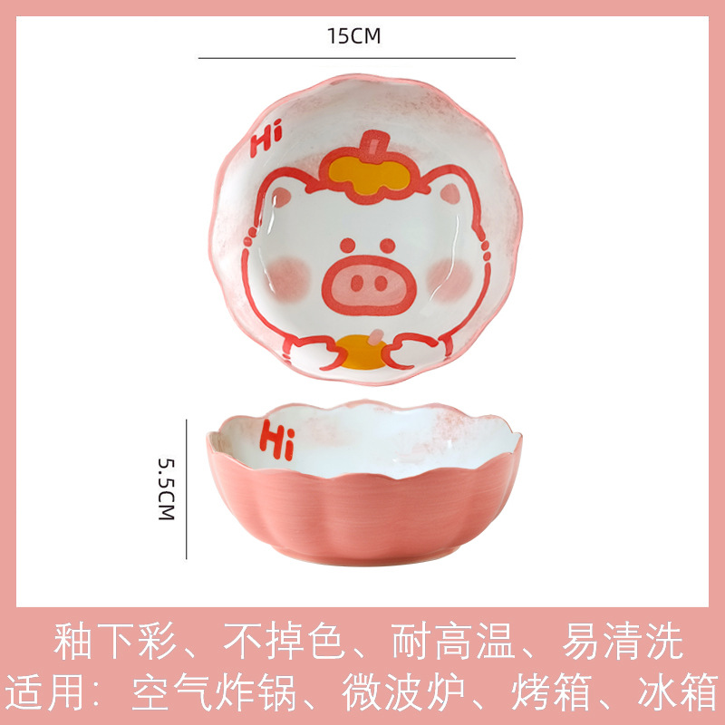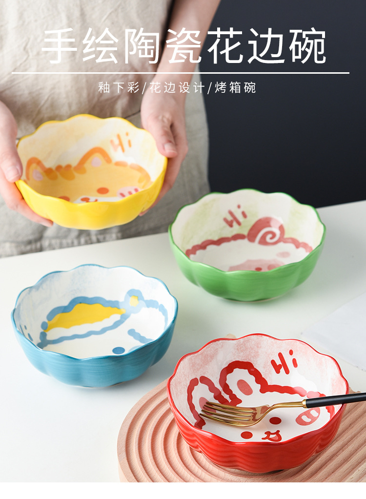 Hi 만화 시리즈 세라믹 레이스 그릇 과일 샐러드 그릇 6 인치 가정용 밥 그릇 동물 손 페인트 언더 글레이즈 컬러 그릇스토어 가기