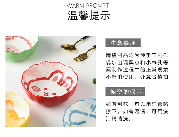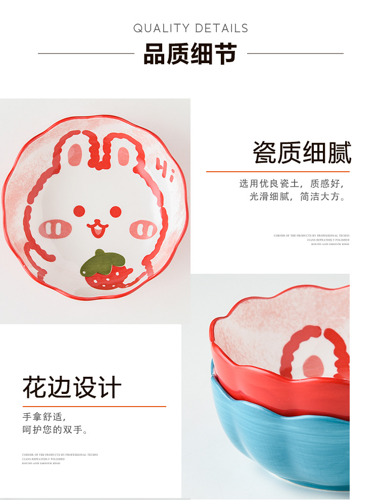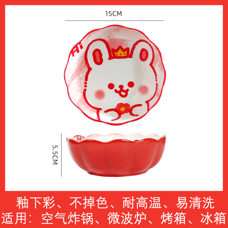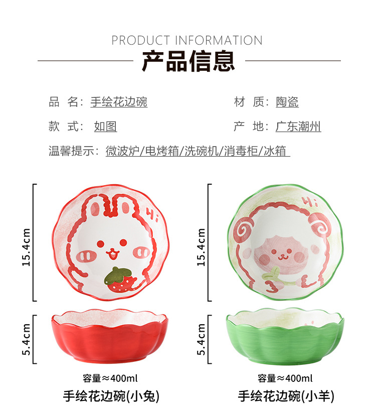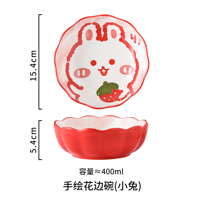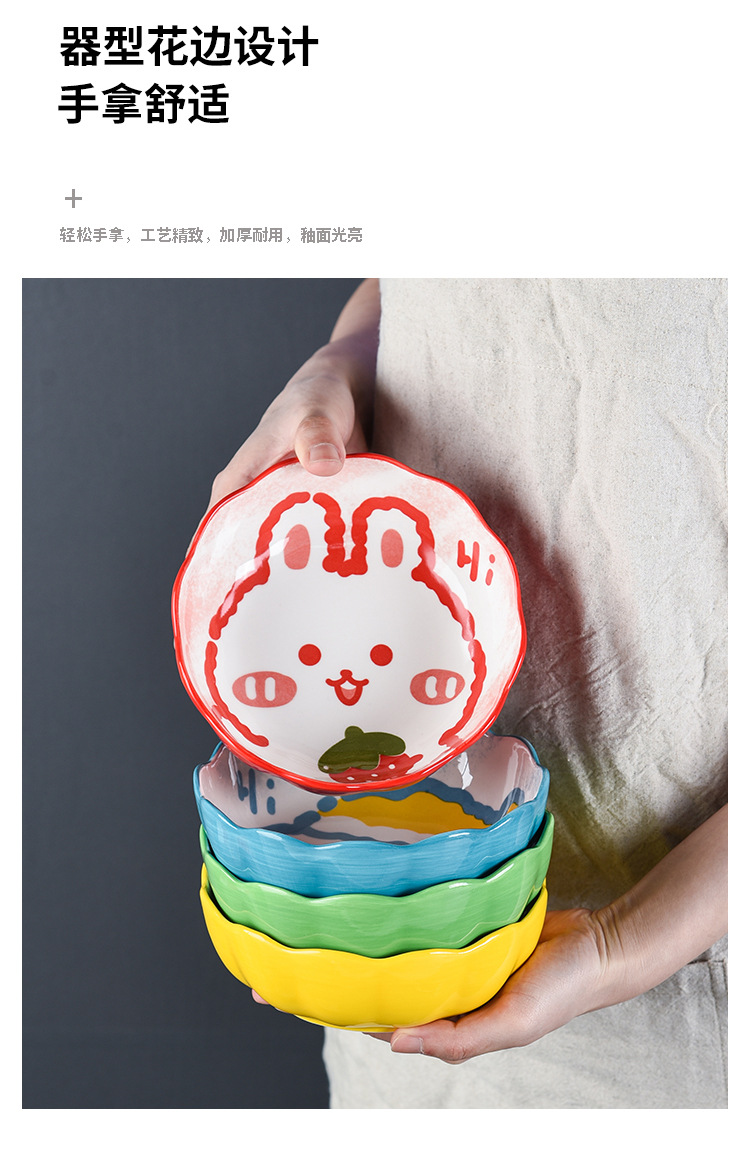 Hi 만화 시리즈 세라믹 레이스 그릇 과일 샐러드 그릇 6 인치 가정용 밥 그릇 동물 손 페인트 언더 글레이즈 컬러 그릇스토어 가기