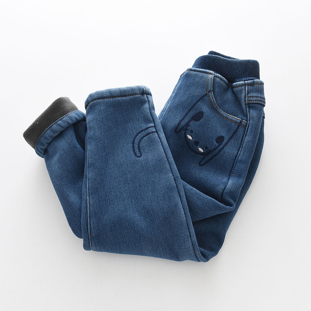 2022冬季新款 卡通绣花 女童松紧腰加绒牛仔长裤