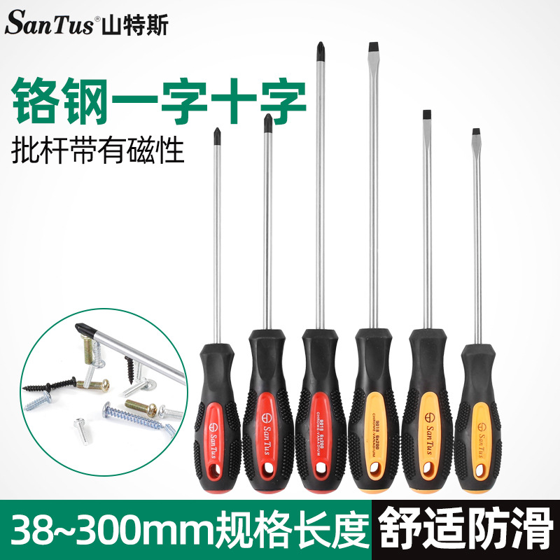 Shantus 스크루 드라이버 플랫 크로스 강한 자기 스크루 드라이버 더블 컬러 핸들 연장 나사 300mm