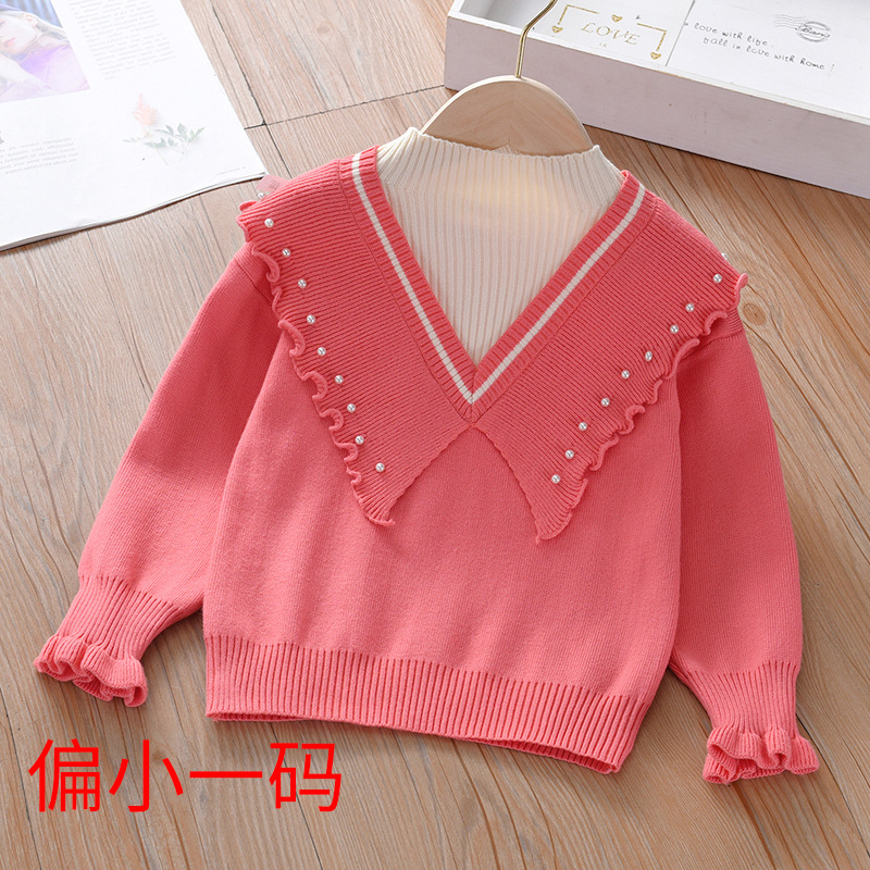 소녀 스웨터 풀오버 봄과 가을 의류 아기 소녀의 서양식 가짜 투피스 스티칭 탑 2022 새로운 니트 스웨터스토어 가기