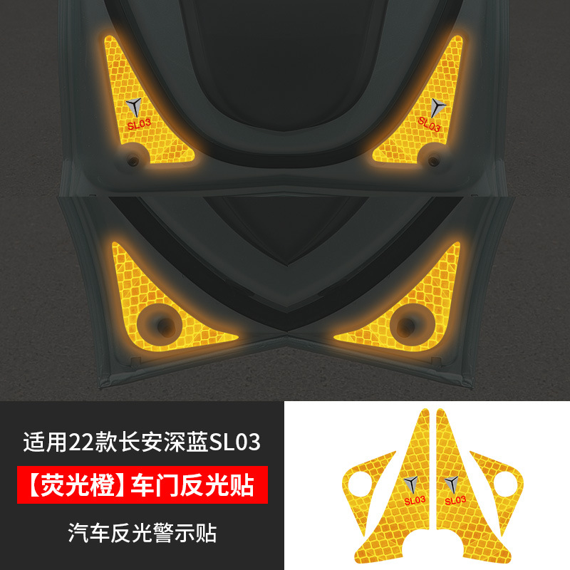 22 Changan 다크 블루 SL03 도어 반사 경고 스티커 트렁크 전기 뒷문 발광 경고 스티커 충돌 방지스토어 가기