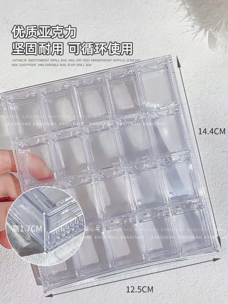 네일 아트 높은 투명 아크릴 보관 상자 네일 다이아몬드 진주 보석 20 지르콘 합금 산화 방지 상자 도매스토어 가기