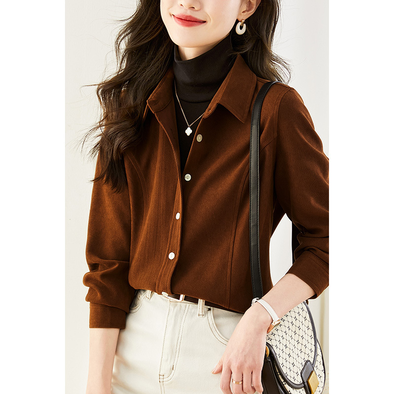 공장 직접 두꺼운 코듀로이 셔츠 여성의 긴 소매 겨울 새로운 복고풍 시크 캐주얼 탑 브러시 베이스 셔츠