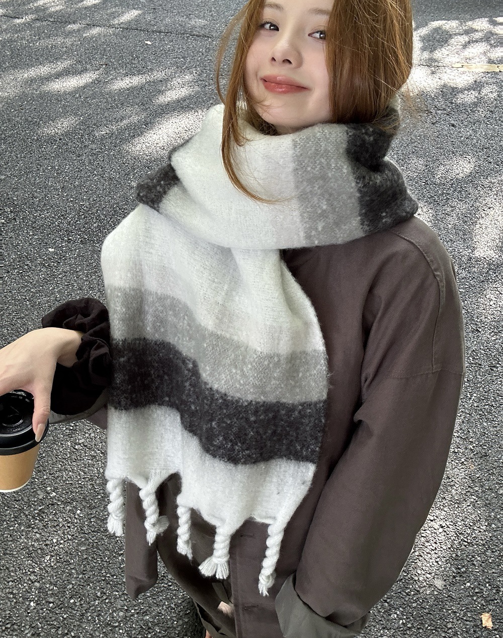 • 두꺼운 단색 대형 스카프, 다크 그레이