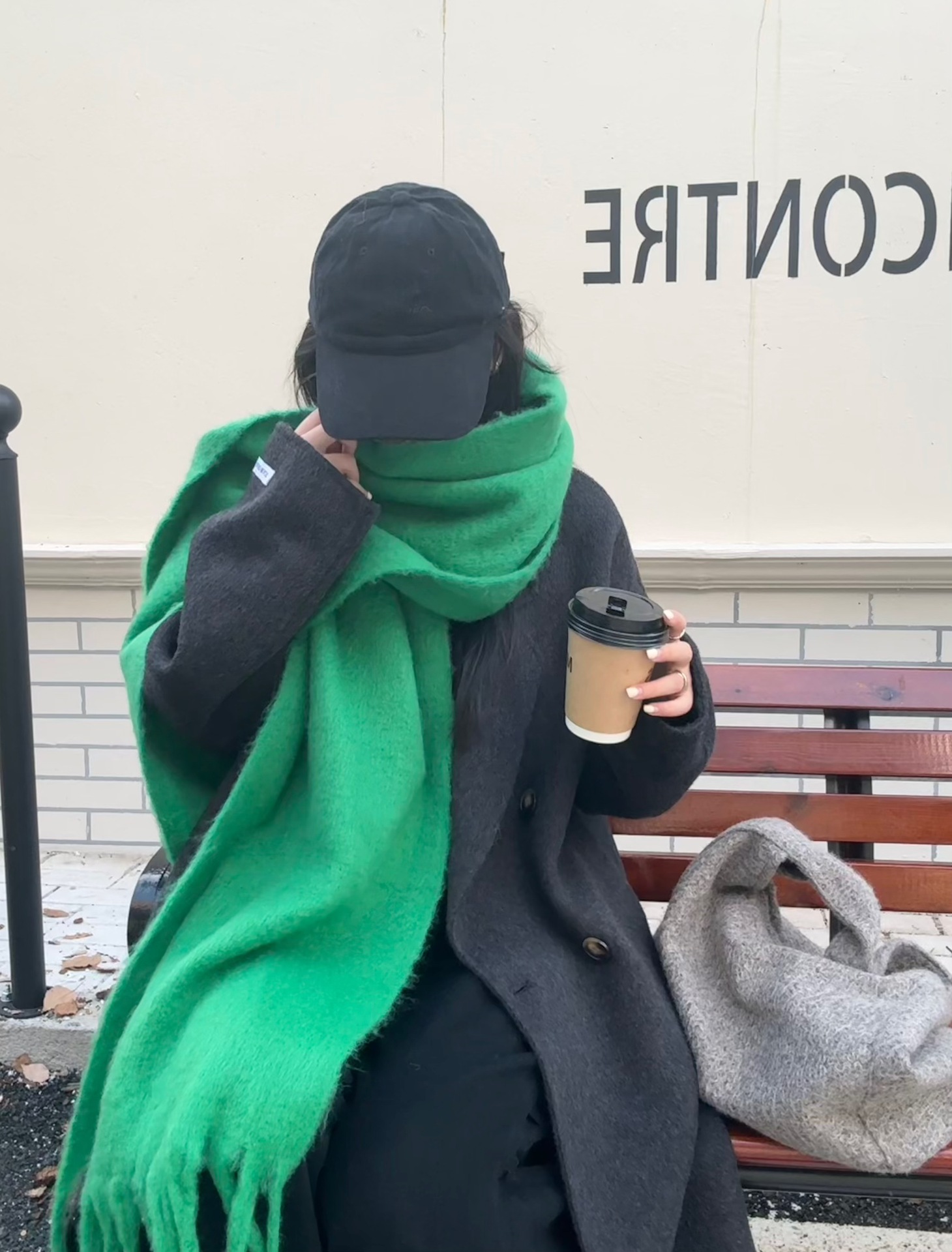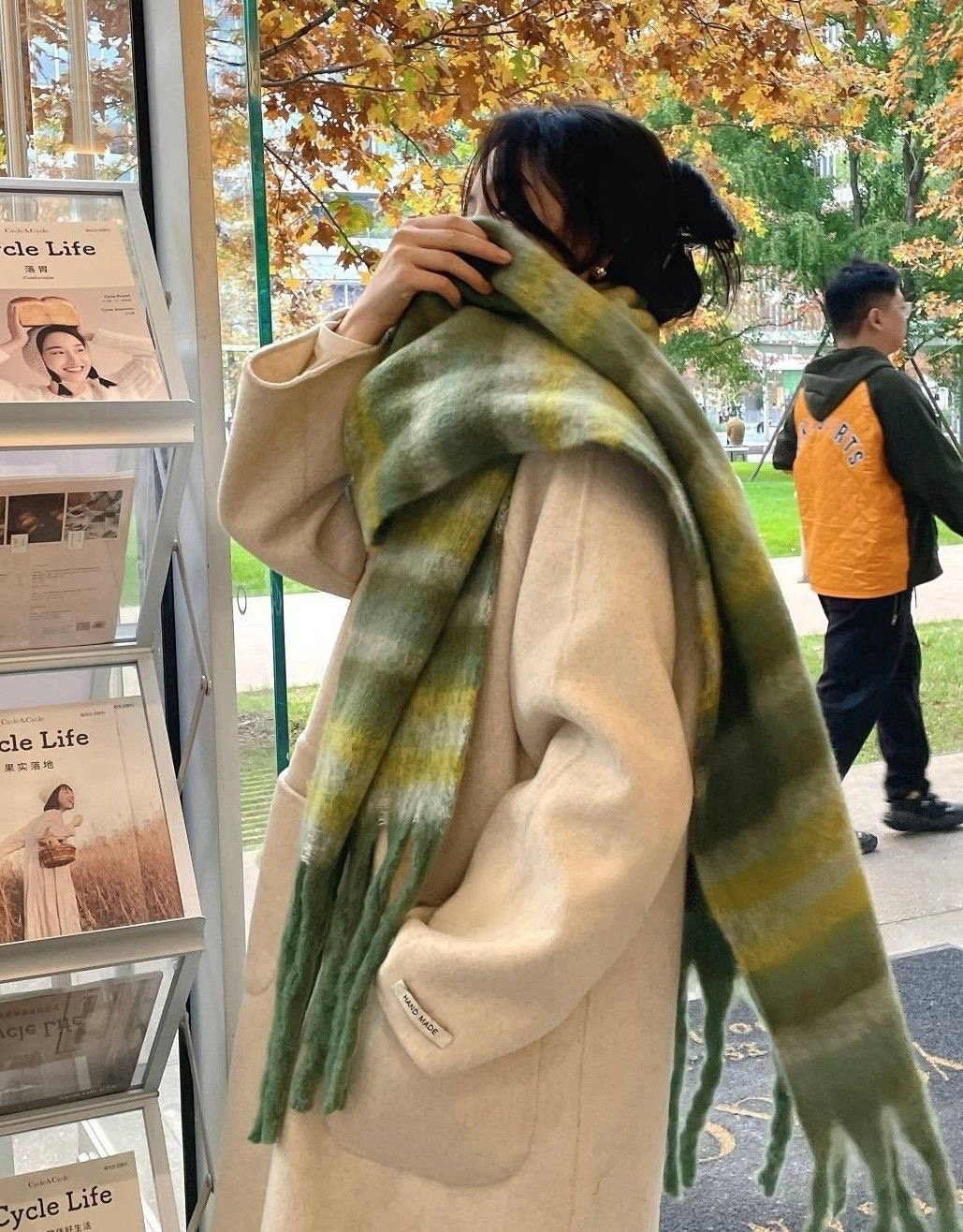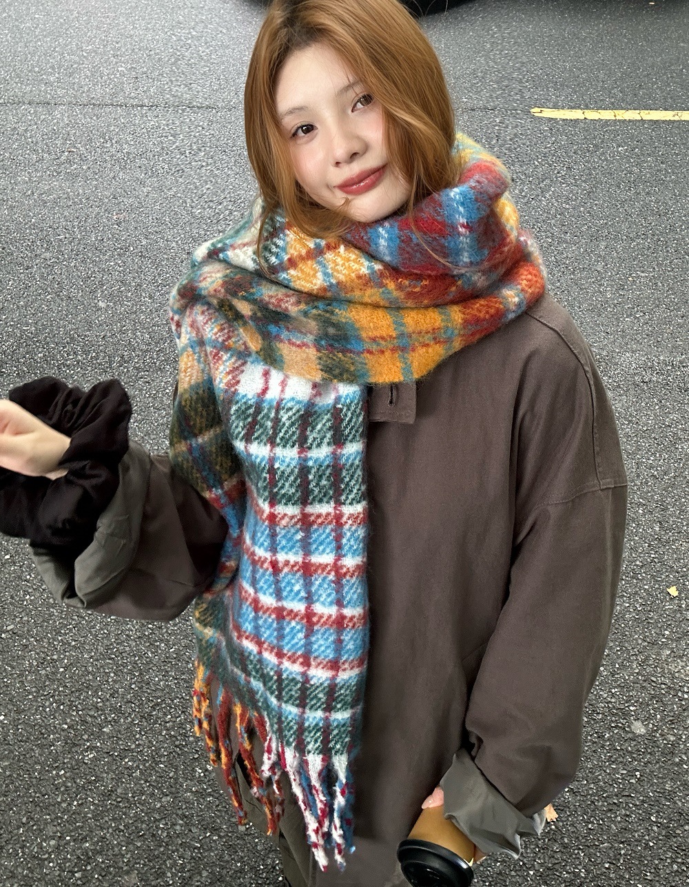 새로운 Maillard Cashmere 격자 무늬 스카프 여성의 가을과 겨울 두꺼운 따뜻한 목도리 이중 목적 단색 학생 스카프
