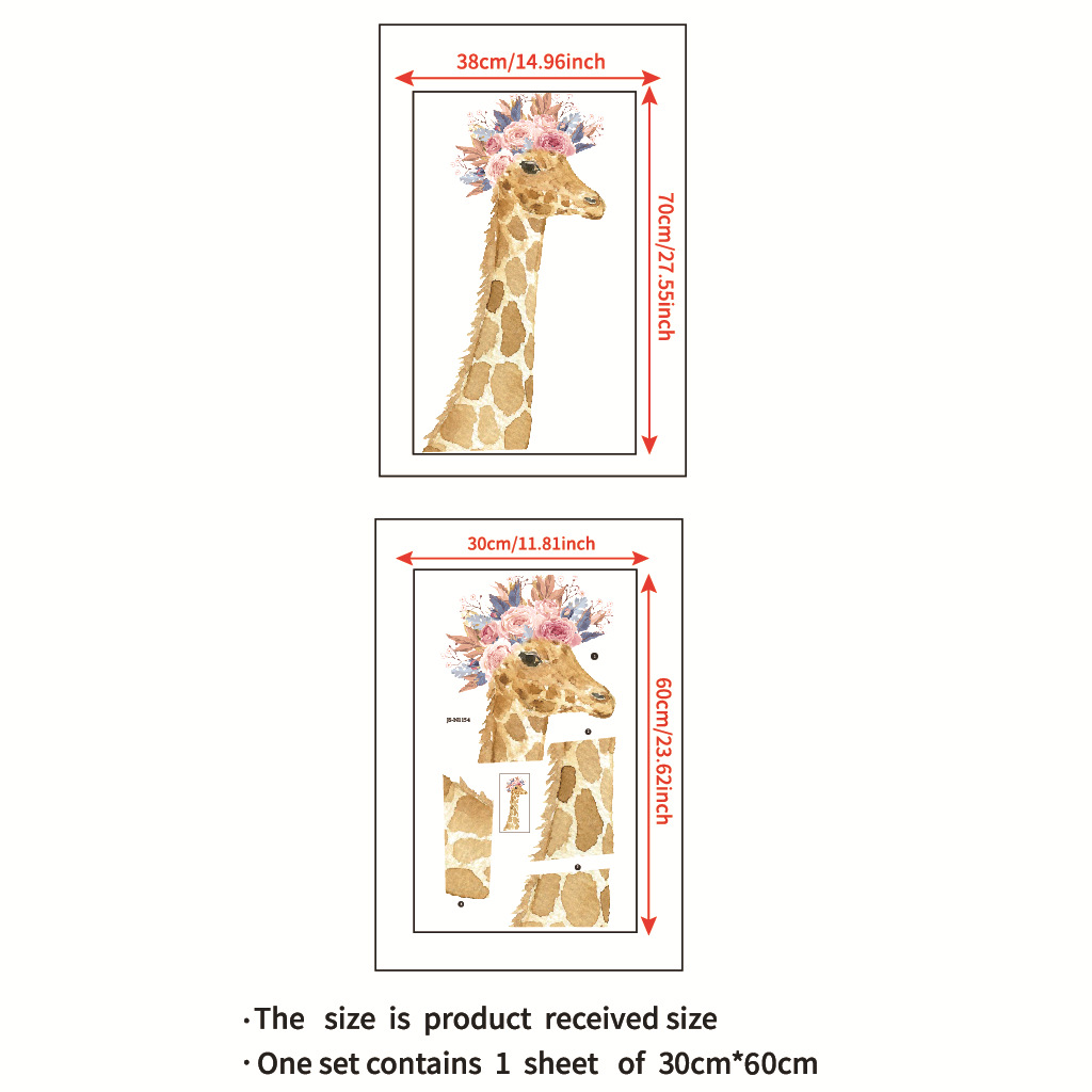 만화 화환 기린 젖빛 스티커 JS-N1154 시리즈 크로스 테두리 사용자 정의 거실 침실 배경 벽 스티커스토어 가기