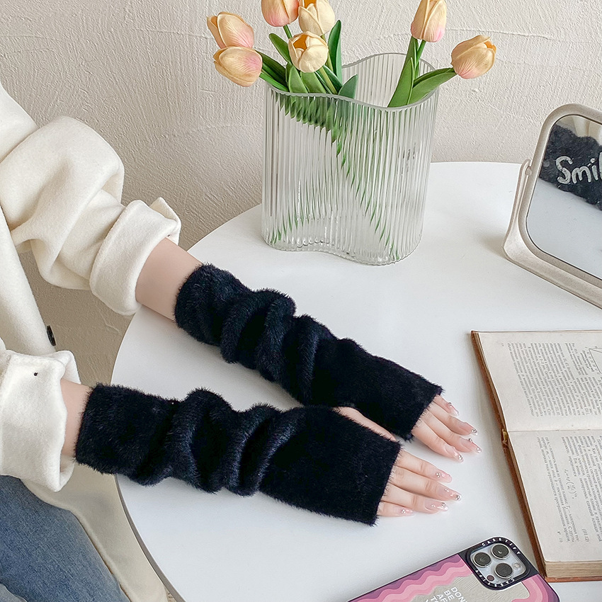가을과 겨울 새로운 모조 밍크 머리 팔 커버 손목 가드 로즈 레드 장갑 여성용 따뜻한 소매 한국 코트스토어 가기