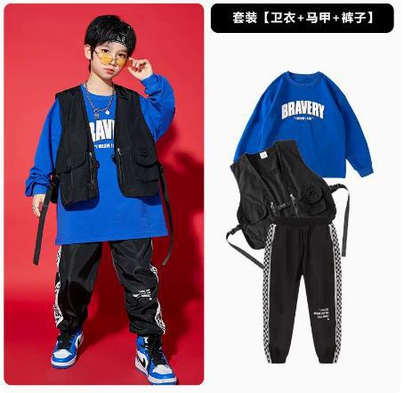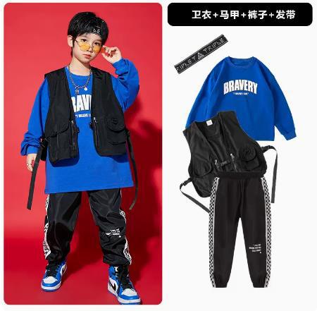 • A1101 블루 웨이 이 + A502 블랙 조끼 + 체크 무늬 블랙 팬츠