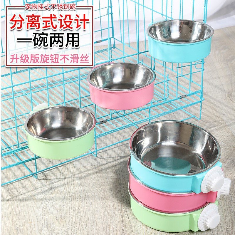 개와 고양이 먹고 마시는 물 교수형 그릇 스테인레스 스틸 개 그릇 고양이 음식 분지는 낙하 방지 고양이 음식 도구 재고 고정 수 있습니다스토어 가기