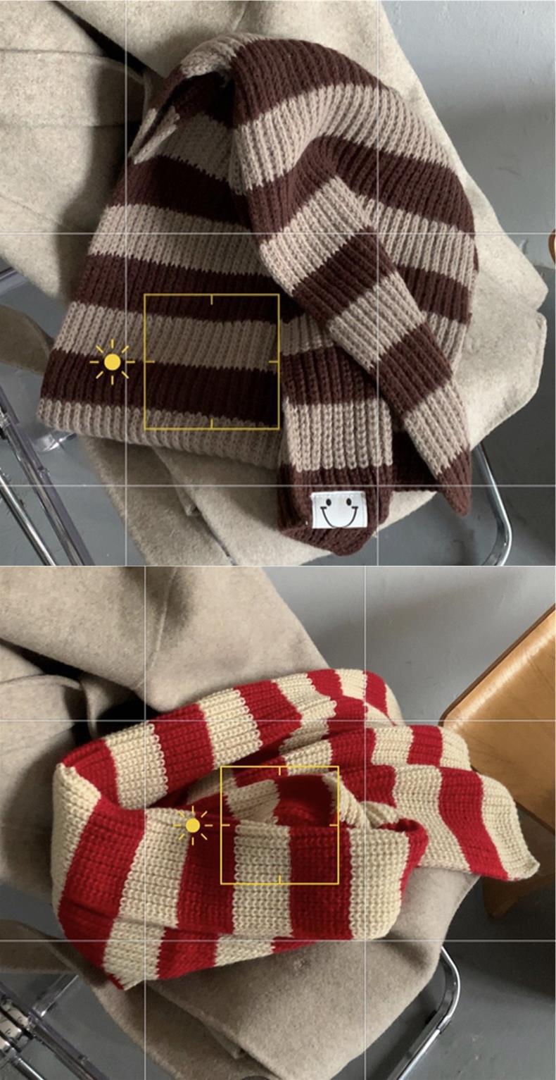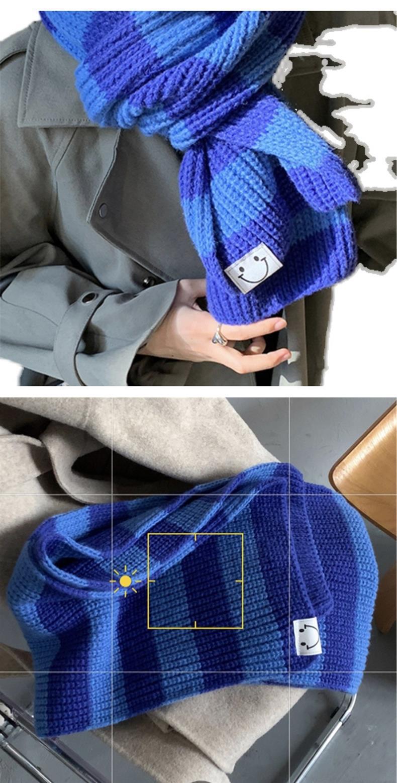 한국식 울 스카프 여성용 가을과 겨울 일본식 클라인 블루 숄 모든 매치 따뜻한 니트 스트라이프 스마일 스카프스토어 가기