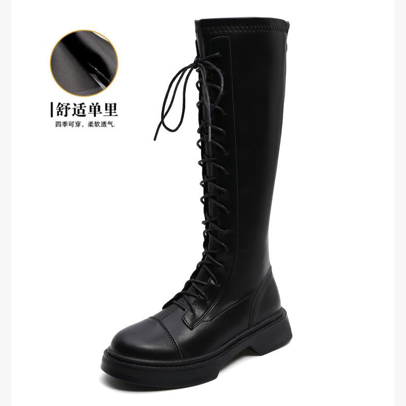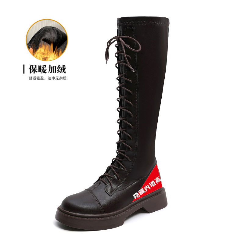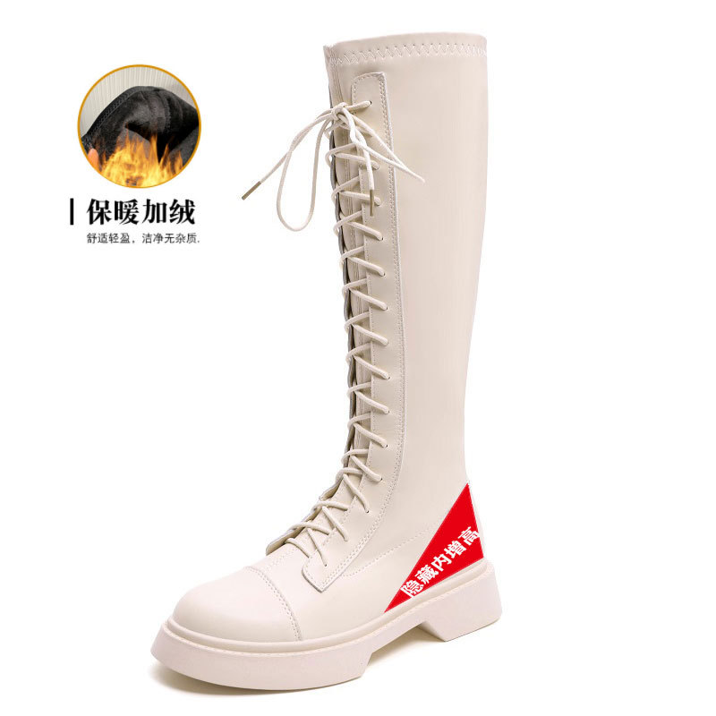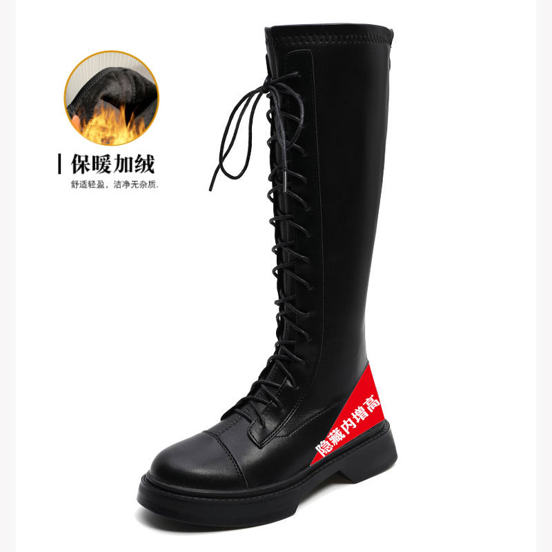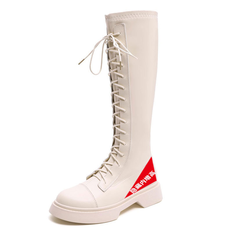2024 봄 신상 두꺼운 밑창 키높이 영국풍 나이트 부츠, 무릎 위까지 오지 않는 신축성 있는 인터넷 인기 슬림 마틴 부츠 여성용스토어 가기
