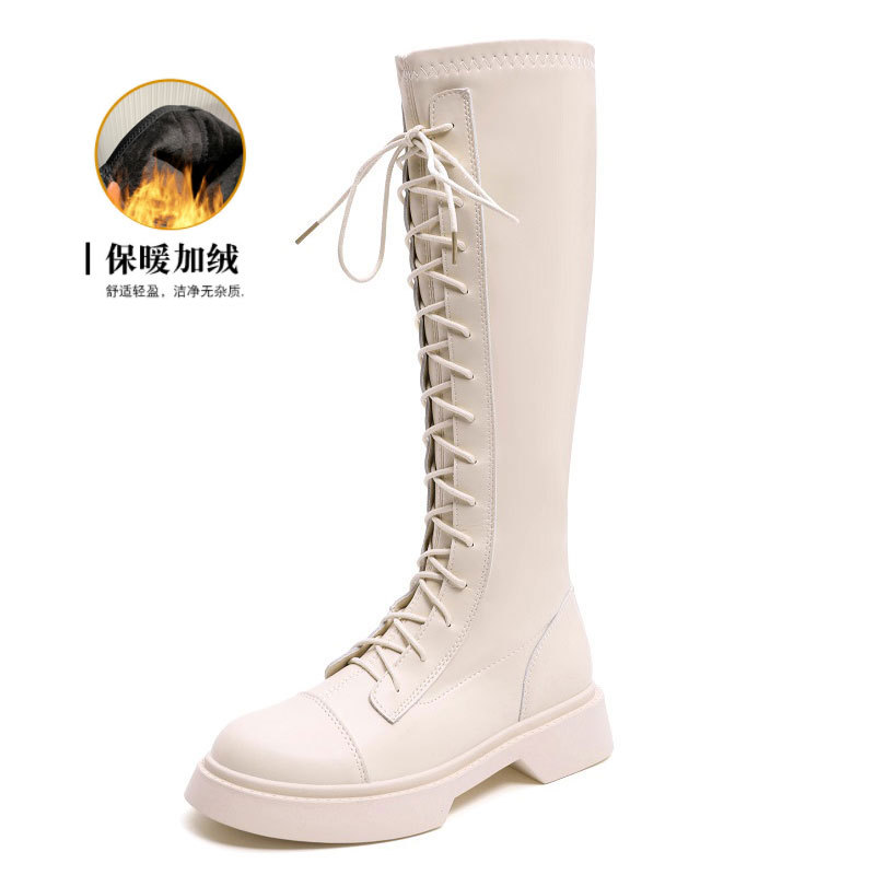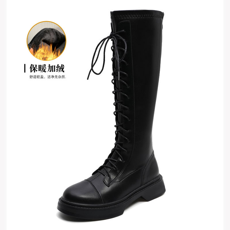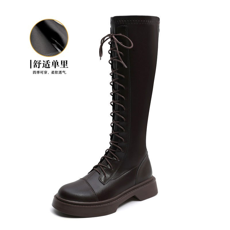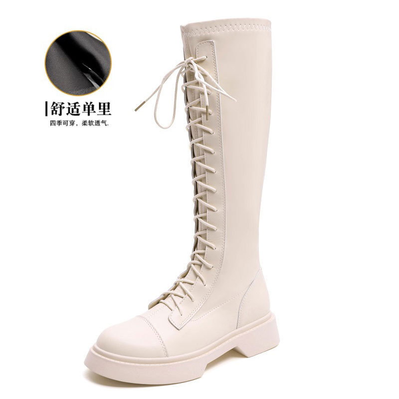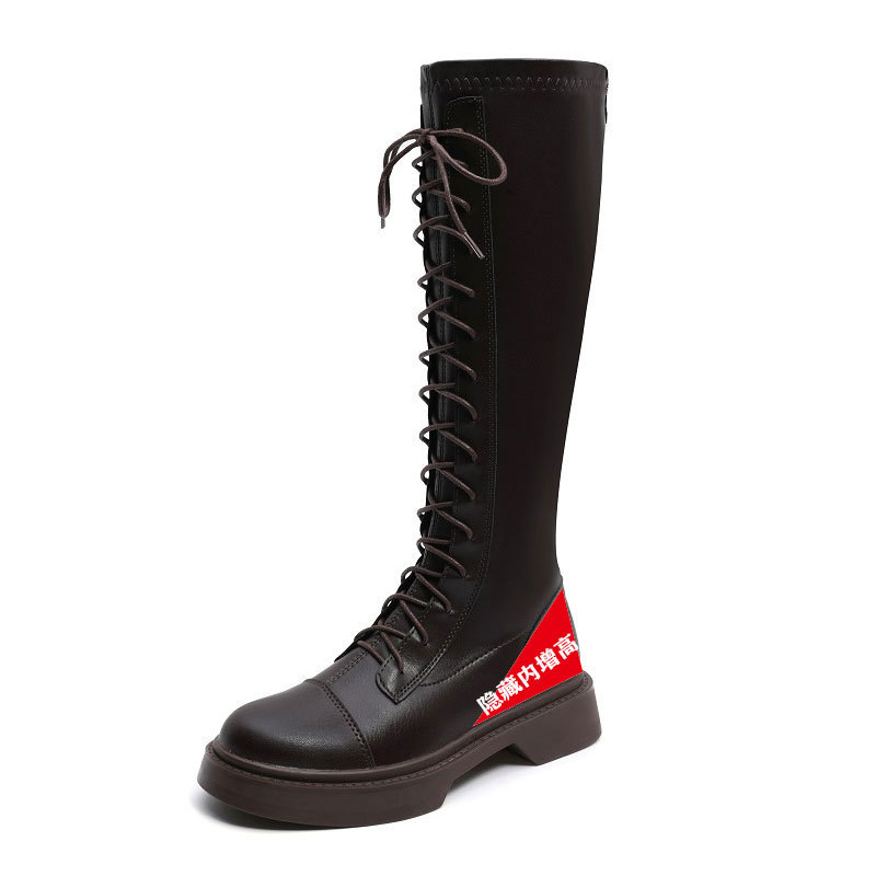 2024 봄 신상 두꺼운 밑창 키높이 영국풍 나이트 부츠, 무릎 위까지 오지 않는 신축성 있는 인터넷 인기 슬림 마틴 부츠 여성용스토어 가기