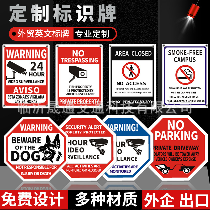 대외 무역 알루미늄 반사 표지판 경고 표시 24 시간 모니터링 알림 모니터링 표지판 만들기 영어 기호스토어 가기