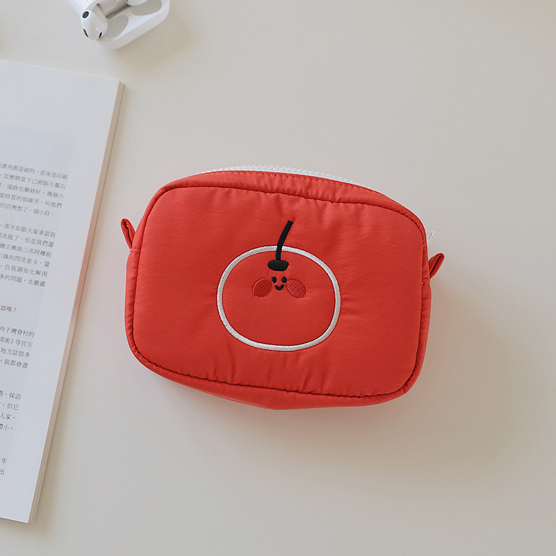 귀여운 수 놓은 화장품 가방 새로운 오렌지 작은 가방 다기능 학생 저장 가방 휴대용 패브릭 클러치 백