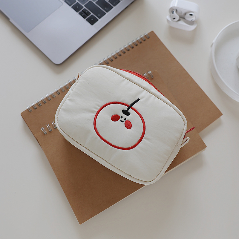 귀여운 수 놓은 화장품 가방 새로운 오렌지 작은 가방 다기능 학생 저장 가방 휴대용 패브릭 클러치 백스토어 가기