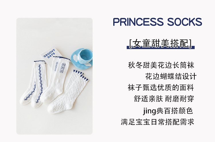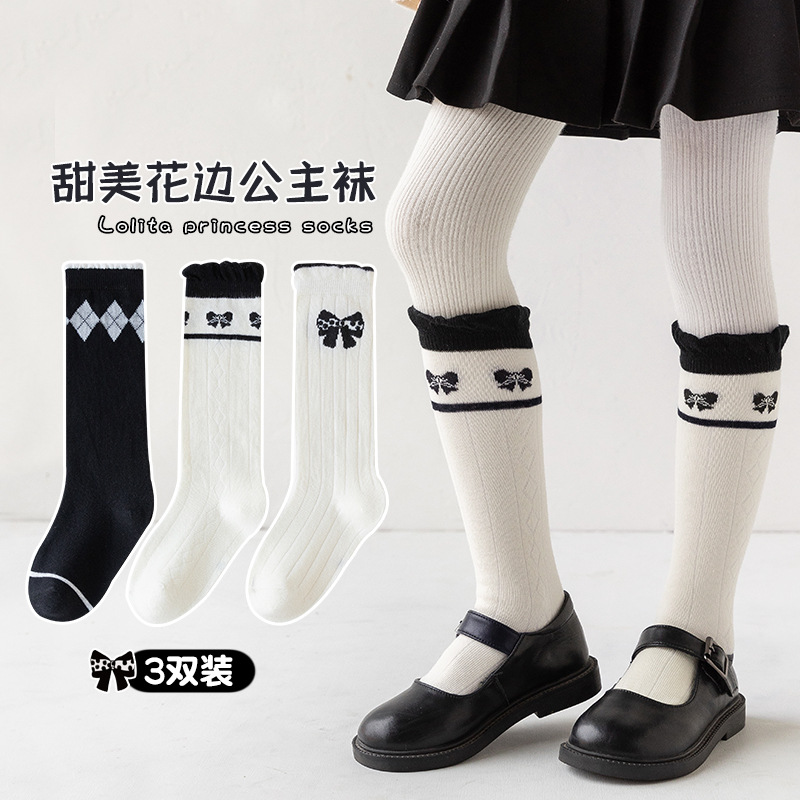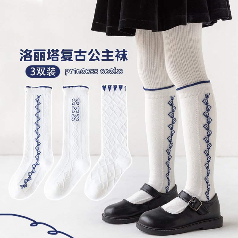 어린이 양말 로리타 빈티지 공주 양말 레이스 활 스타킹 여자 아기 면화 송아지 양말 면 양말