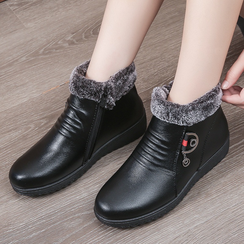 기모 면 신발 따뜻한 어머니 신발 중년 및 노인 두꺼운 미끄럼 방지 앵클 부츠 노인 플랫 스노우 부츠 겨울 신발
