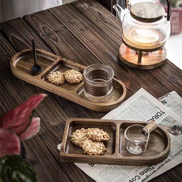 일본식 나무 타원형 레트로 분할 접시, 요리 준비 접시, 아침 식사 접시, 상업용 접시, 디저트 접시, 원목스토어 가기