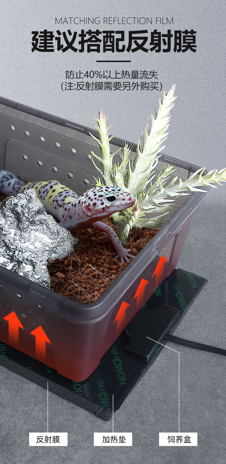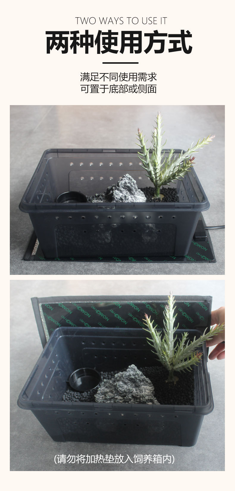 노모 등반 애완 동물 난방 패드 도마뱀 물고기 탱크 뿔 개구리 애완 동물 단열 먹이 상자 난방 온도 제어 궁전 파충류 싸우는 물고기