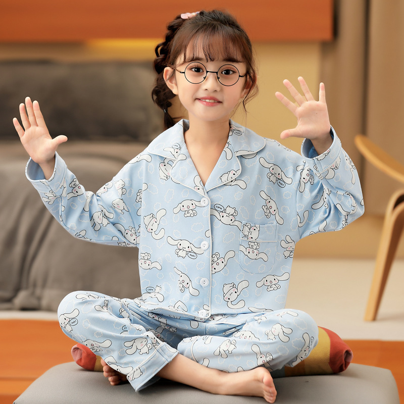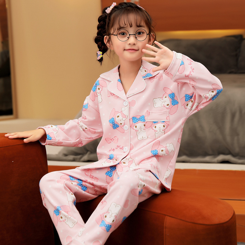 소녀 잠옷 순면 긴팔 봄 가을 카디건 세트 만화 귀여운 소녀의 나이 많은 아이들 핑크 달콤한 홈 웨어스토어 가기