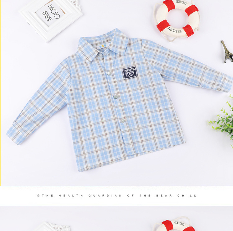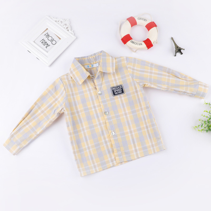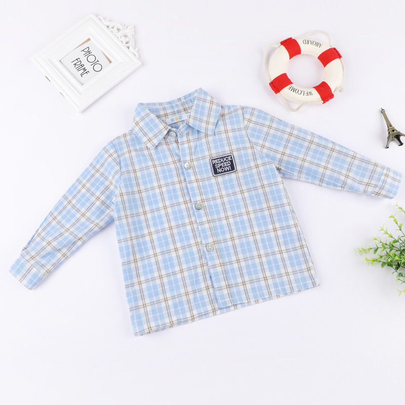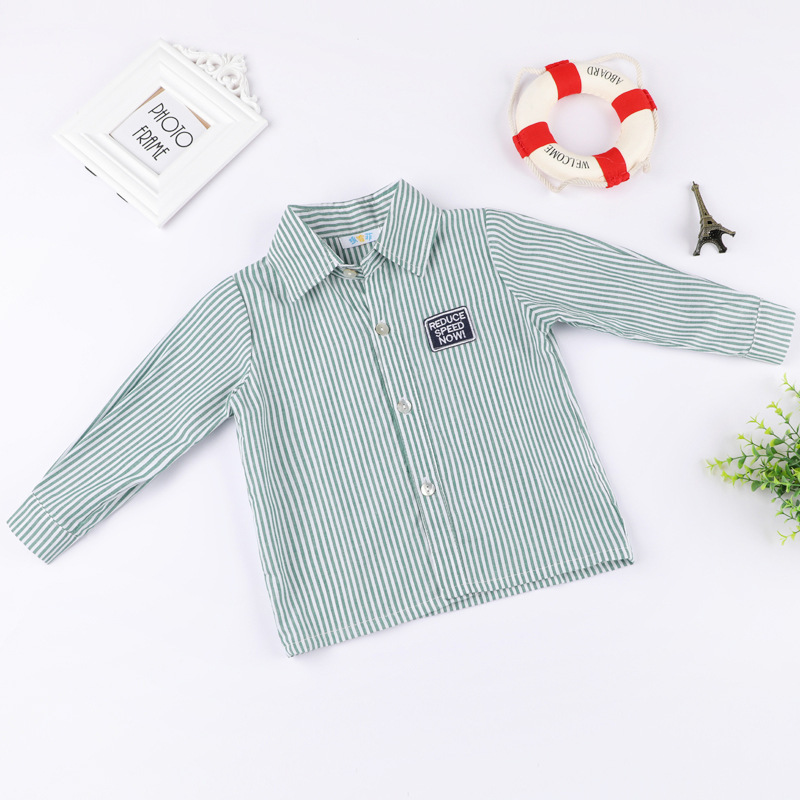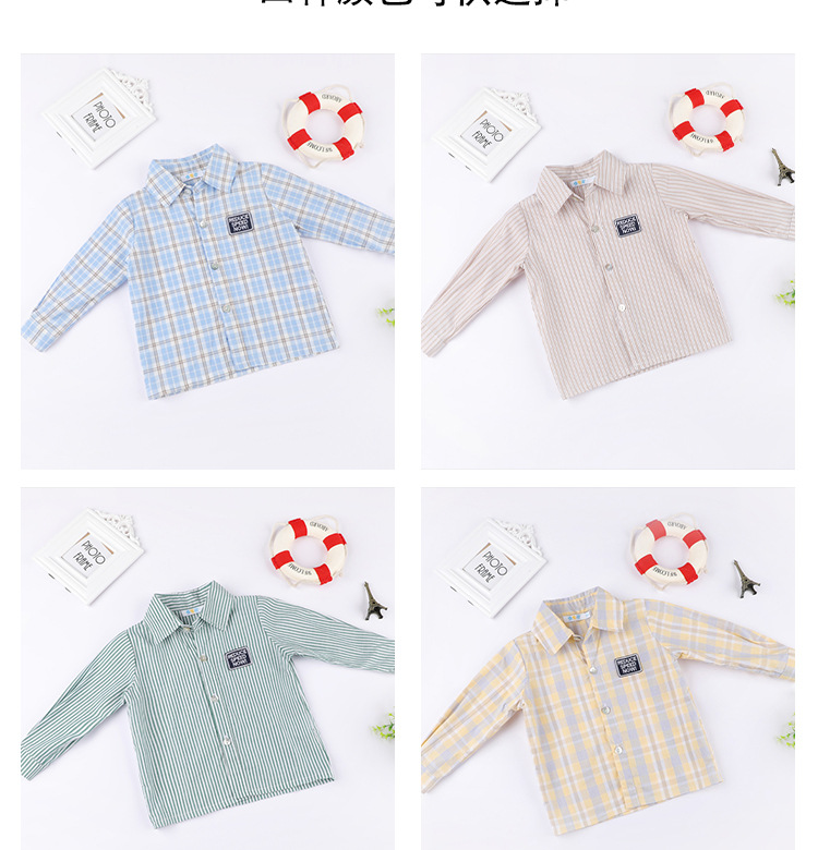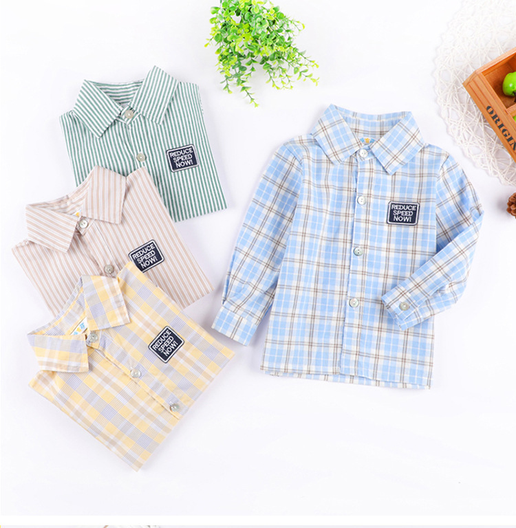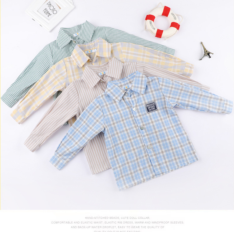 봄과 가을 소년 셔츠 한국식 격자 무늬 스트라이프 셔츠 소년의 긴팔 셔츠 면 옷깃 캐주얼 겉옷 유행스토어 가기