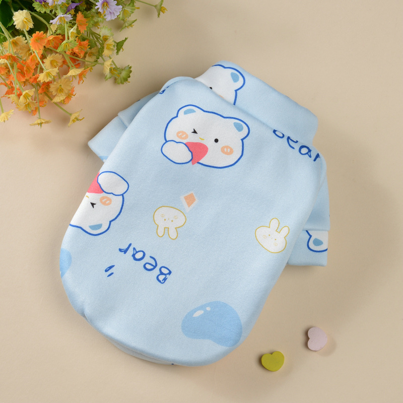 애완 동물 옷 작은 개 고양이 가을과 겨울 테디 베어 만화 인쇄 두 다리 기모 따뜻한 스웨터 도매