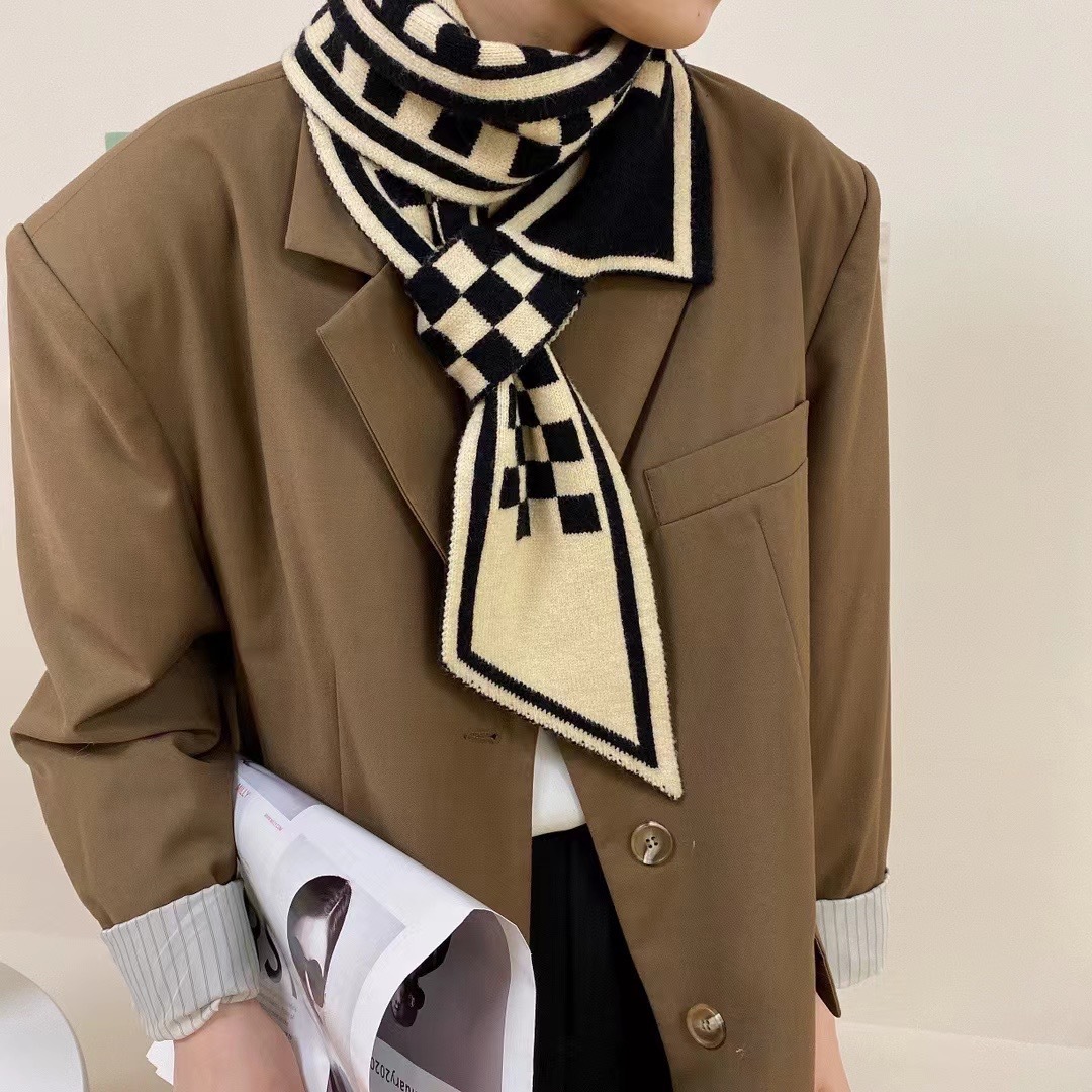 새로운 한국식 houndstooth 격자 무늬 크로스 스카프 여성용 바둑판 귀 스카프 가을과 겨울 니트 울 스카프