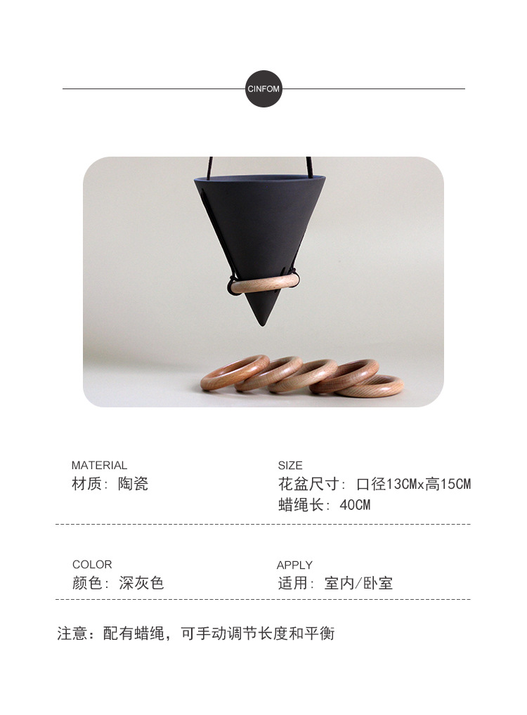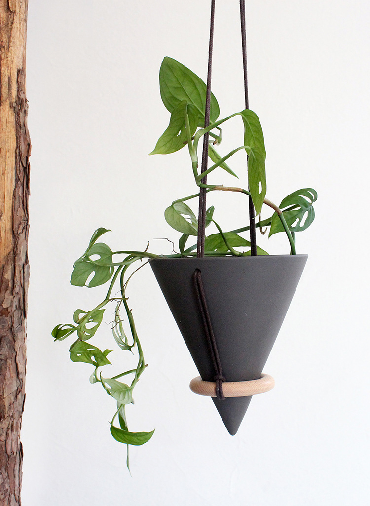 • 세라믹 삼각형 매달려 분지 다크 그레이