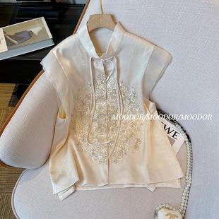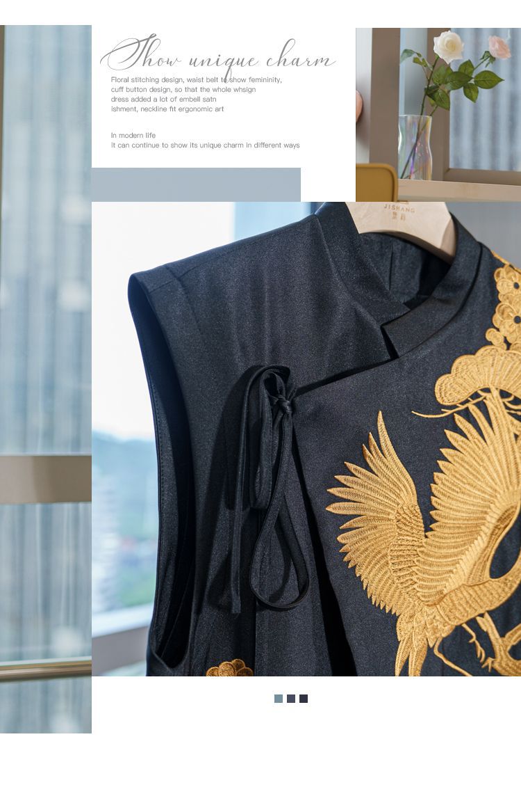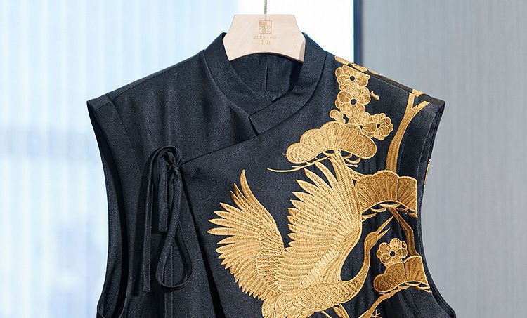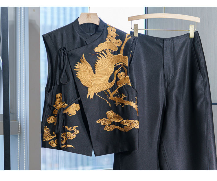 내셔널 타이드 스타일 조끼 재킷 유행 서양 중공업 크레인 자수 새로운 중국 스타일 여성을위한 느슨한 레이스 업 조끼