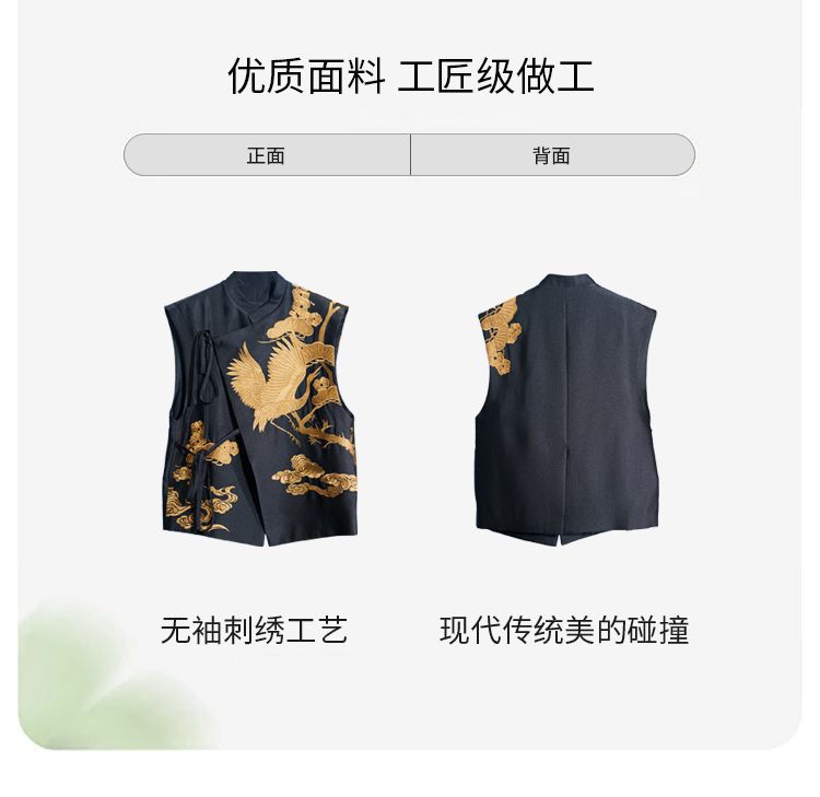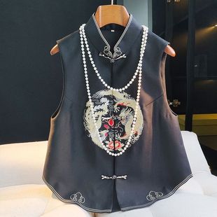 내셔널 타이드 스타일 조끼 재킷 유행 서양 중공업 크레인 자수 새로운 중국 스타일 여성을위한 느슨한 레이스 업 조끼스토어 가기