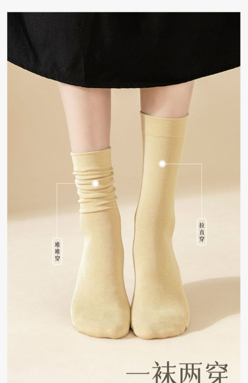 여성용 양말 봄, 가을 단색 중반 종아리 양말 가을 감금 양말 산후 가을, 겨울 흰색 뼈없는 스타킹 더미 양말
