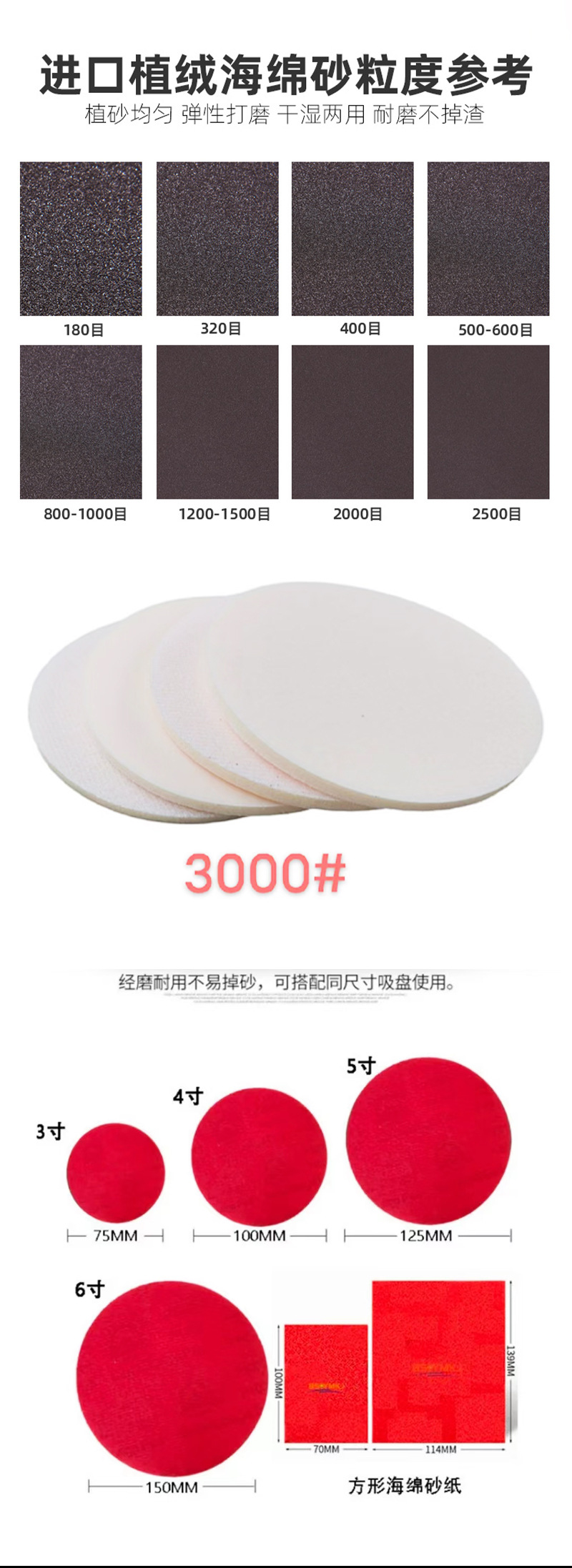 • 3 인치 75mm 후면 벨벳 스폰지 시트 1000 #