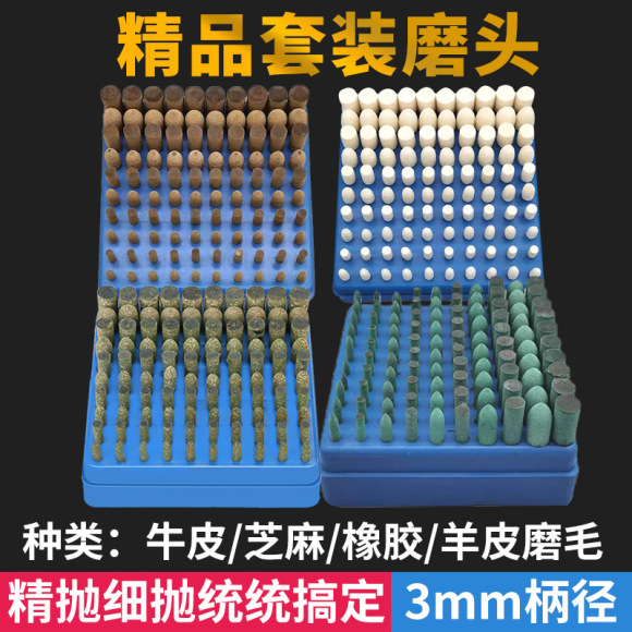 红刚玉羊毛牛皮芝麻橡胶磨头柱形子弹型3mm打磨抛光套装混合磨头