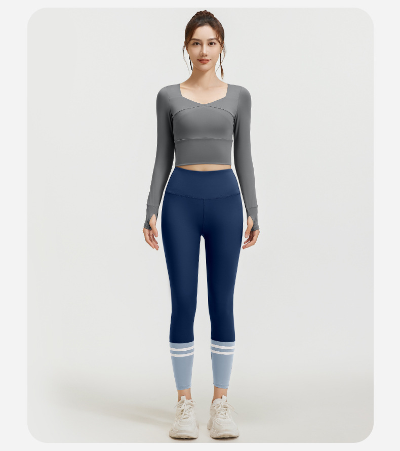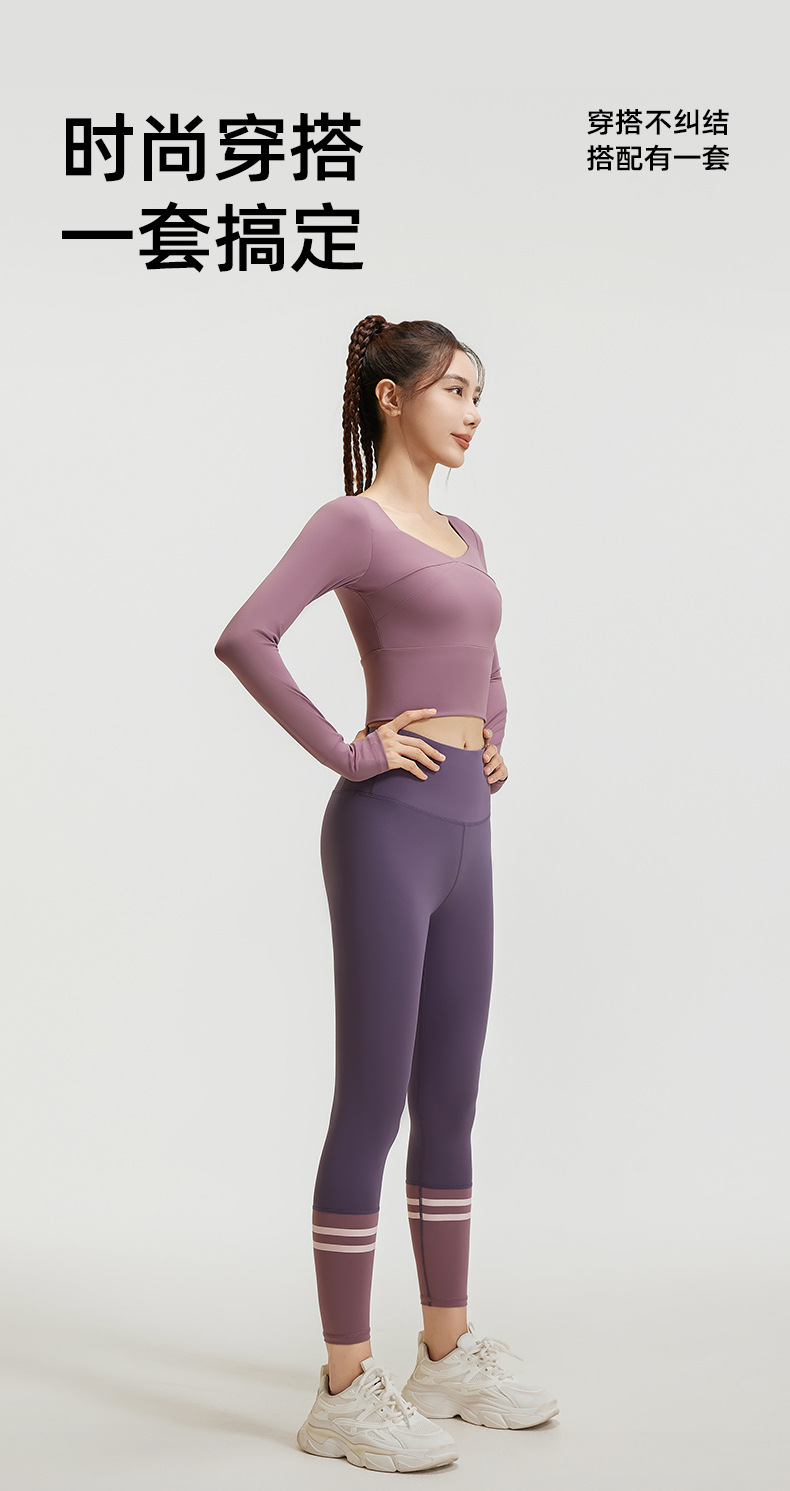 Ju Yi Tang 스티칭 허리 요가 세트 피트니스 세트 필라테스 슬림 피트니스 세트 여성스토어 가기