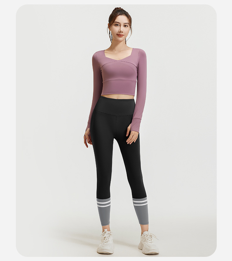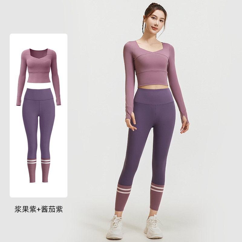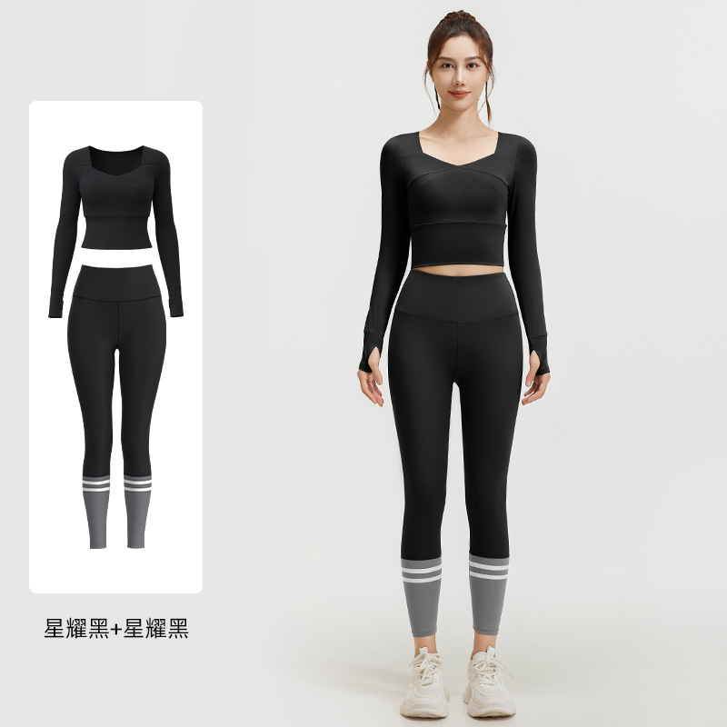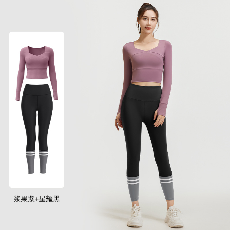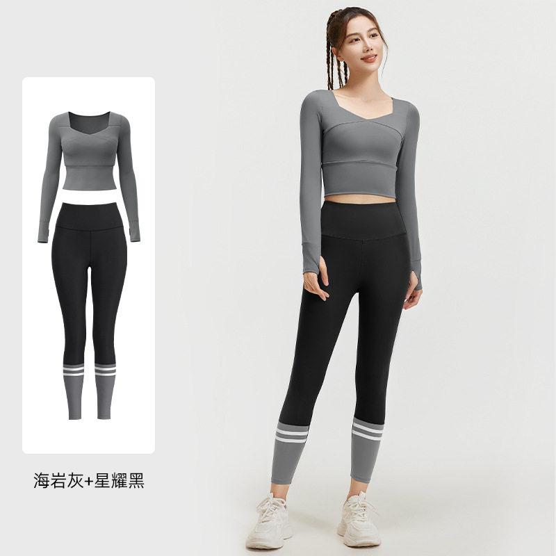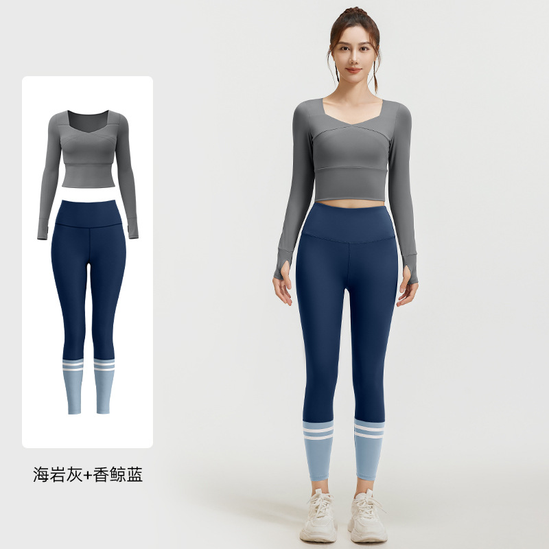 Ju Yi Tang 스티칭 허리 요가 세트 피트니스 세트 필라테스 슬림 피트니스 세트 여성