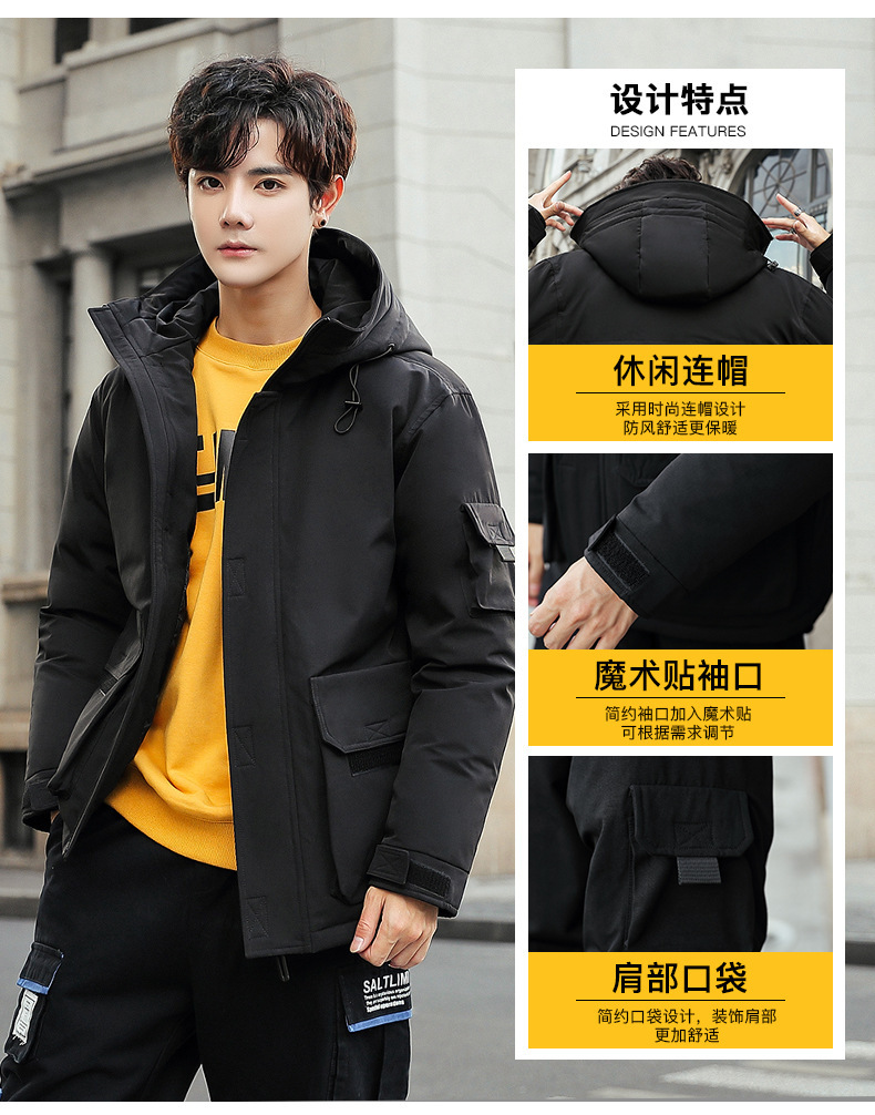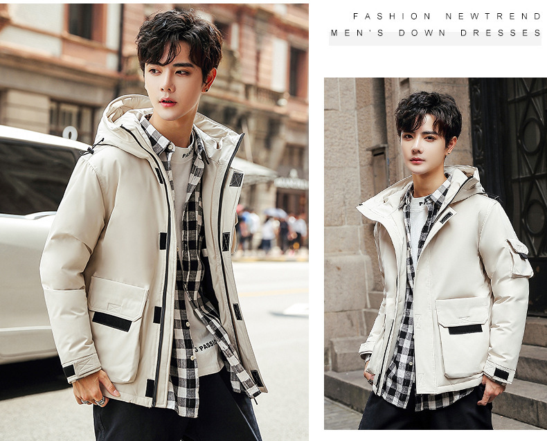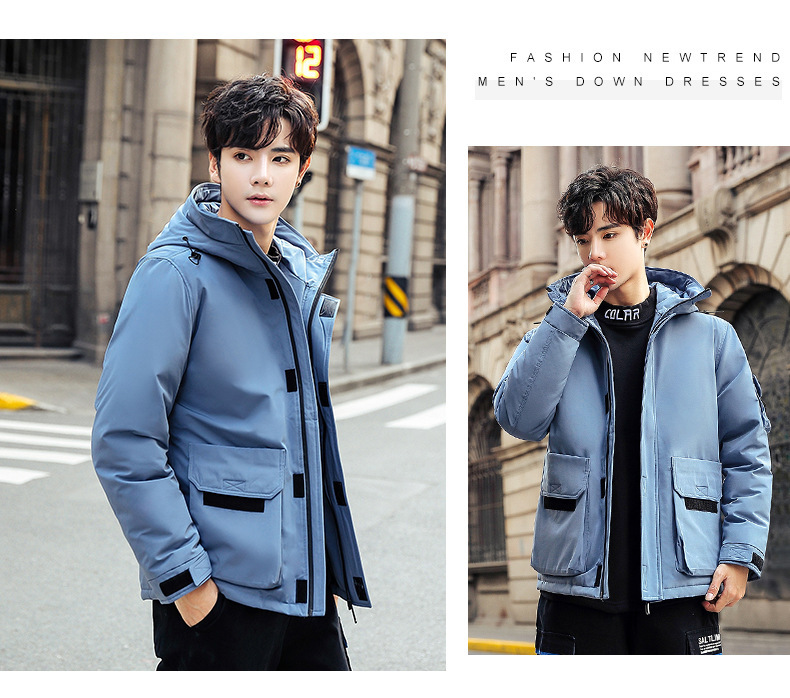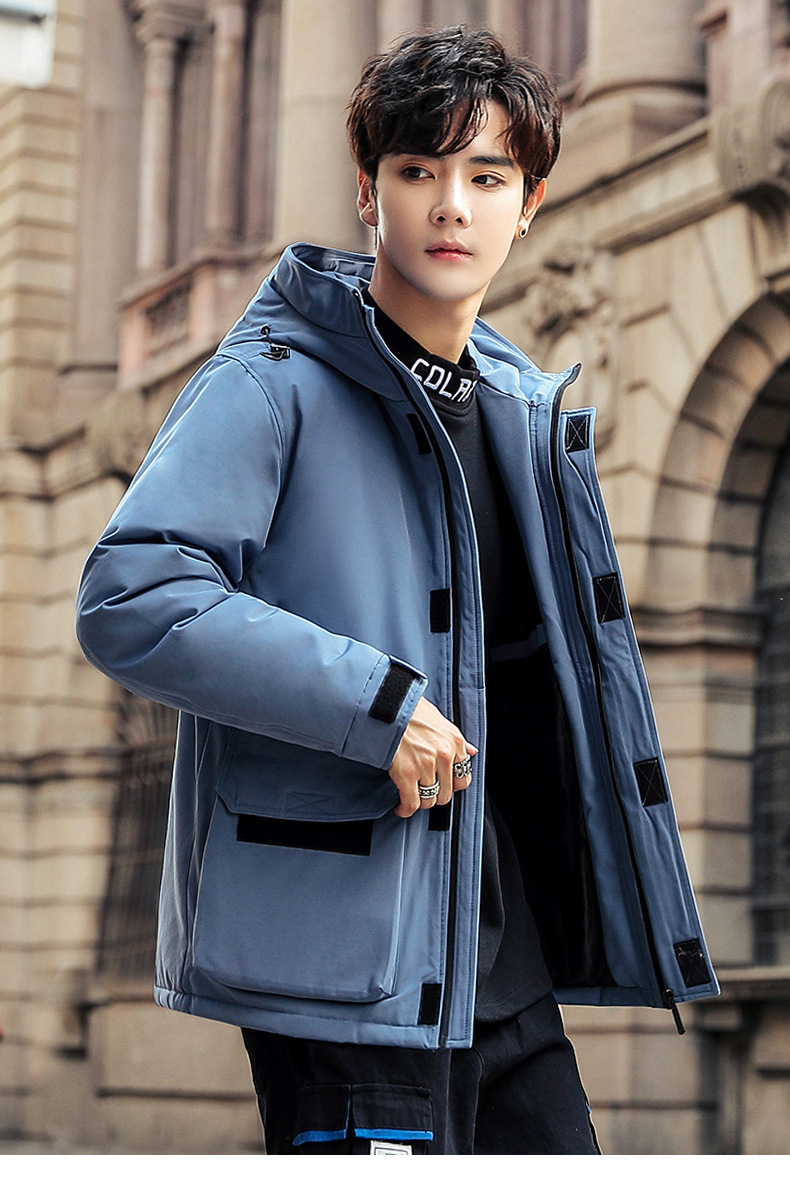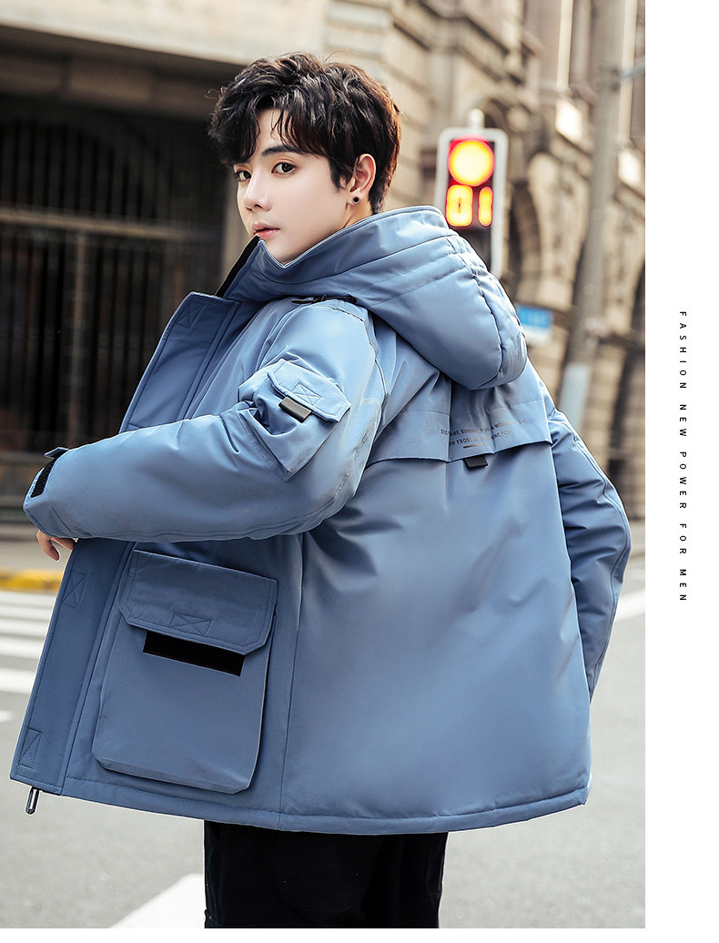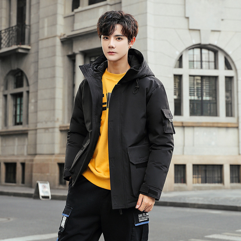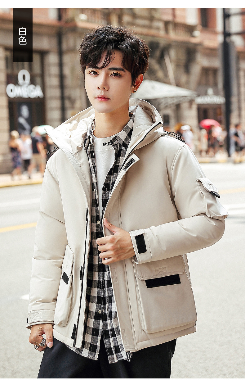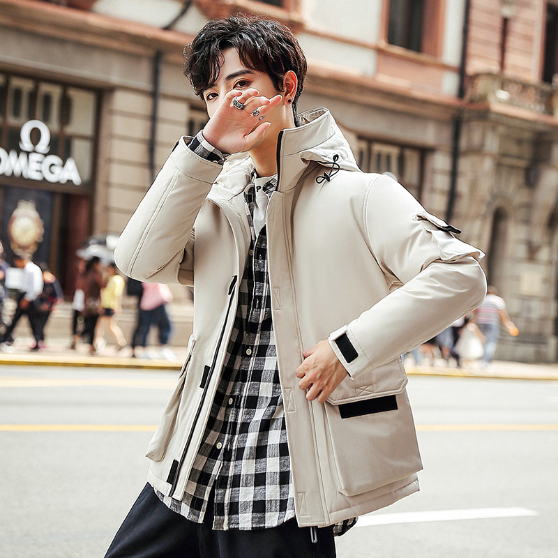 다운 재킷 남자의 2022 새로운 패션 잘 생긴 짧은 툴링 어린 학생 가벼운 두꺼운 겨울 코트