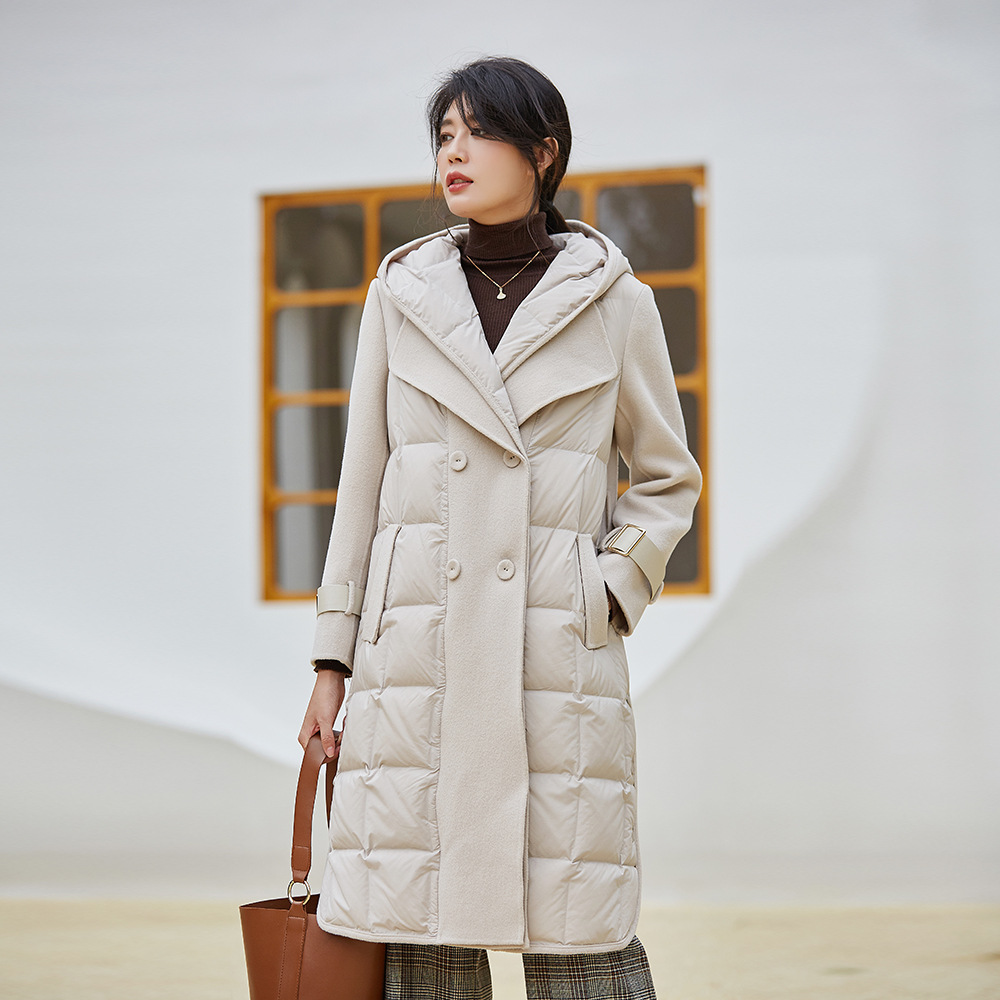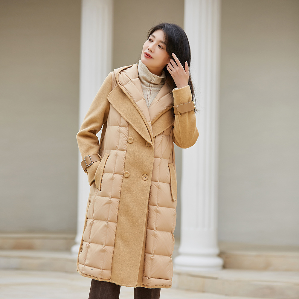 ● 货号:12020 ● 款名:双面呢拼接羽绒服