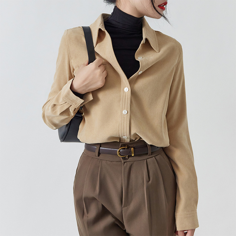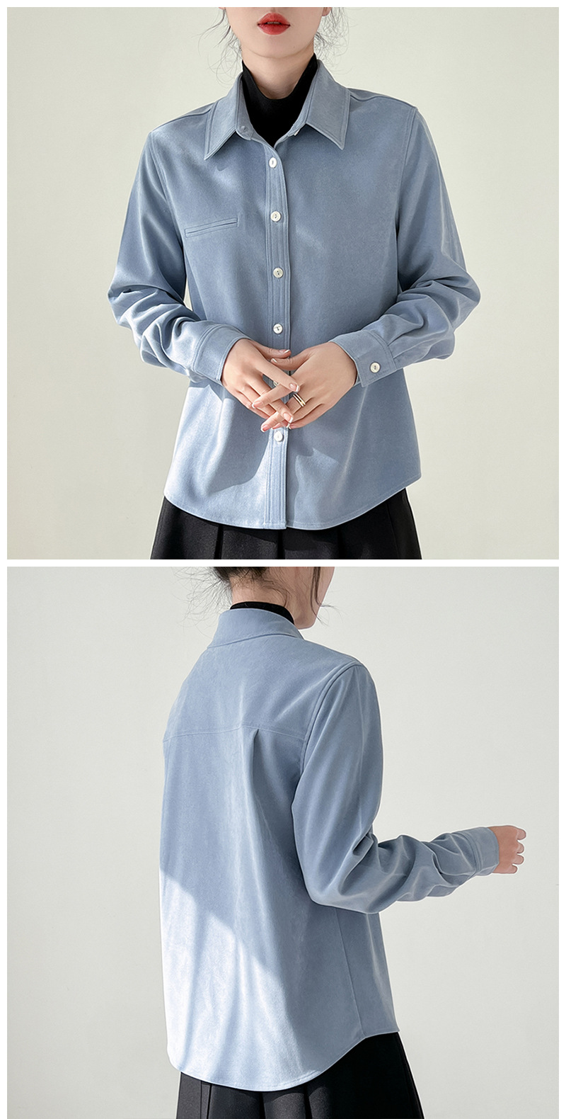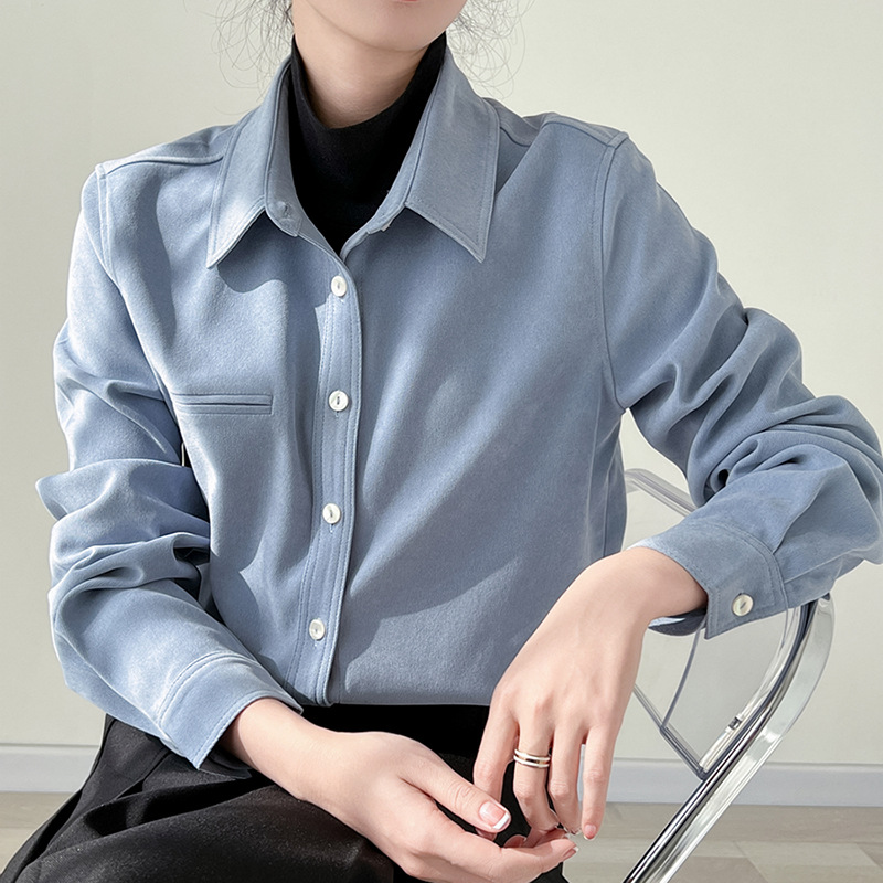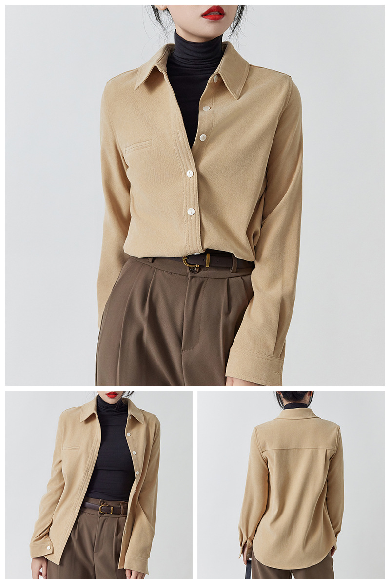 메일라드 스타일 코듀로이 셔츠 여성용 가을 겨울 디자인 감각 있는 니치 베이스 레이어 두꺼운 기모 셔츠스토어 가기