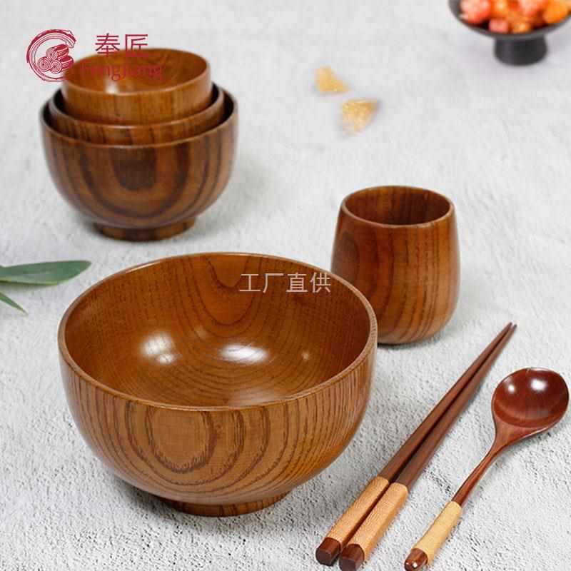 도매 대추 나무 그릇 어린이 가정 세트 단단한 나무 밥 그릇 나무 빈티지 큰 일본식 나무 그릇 식기 보물