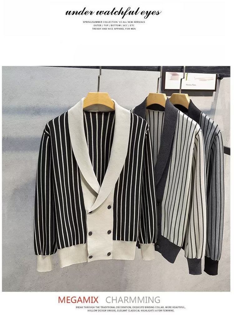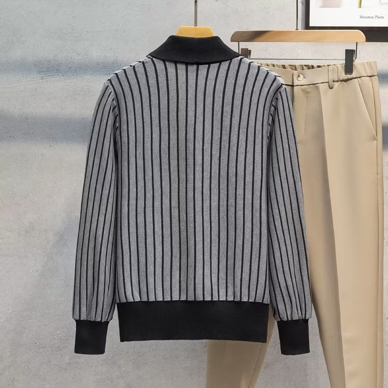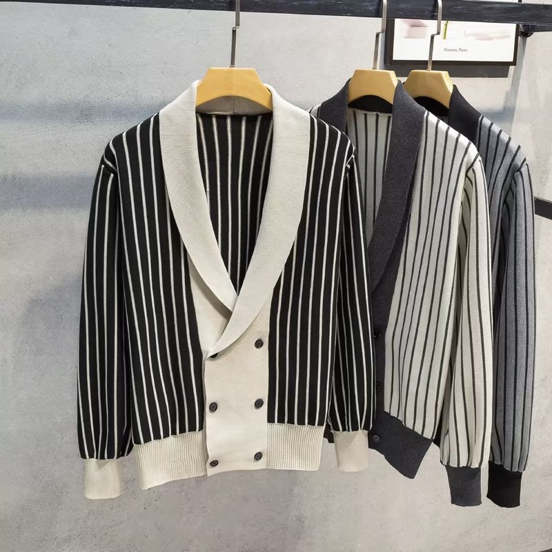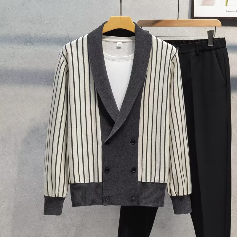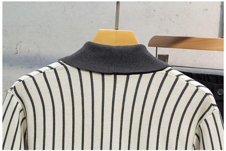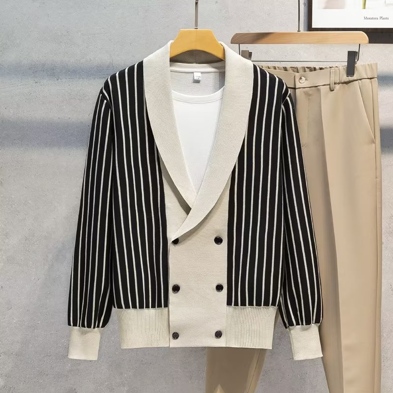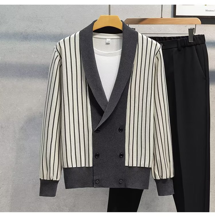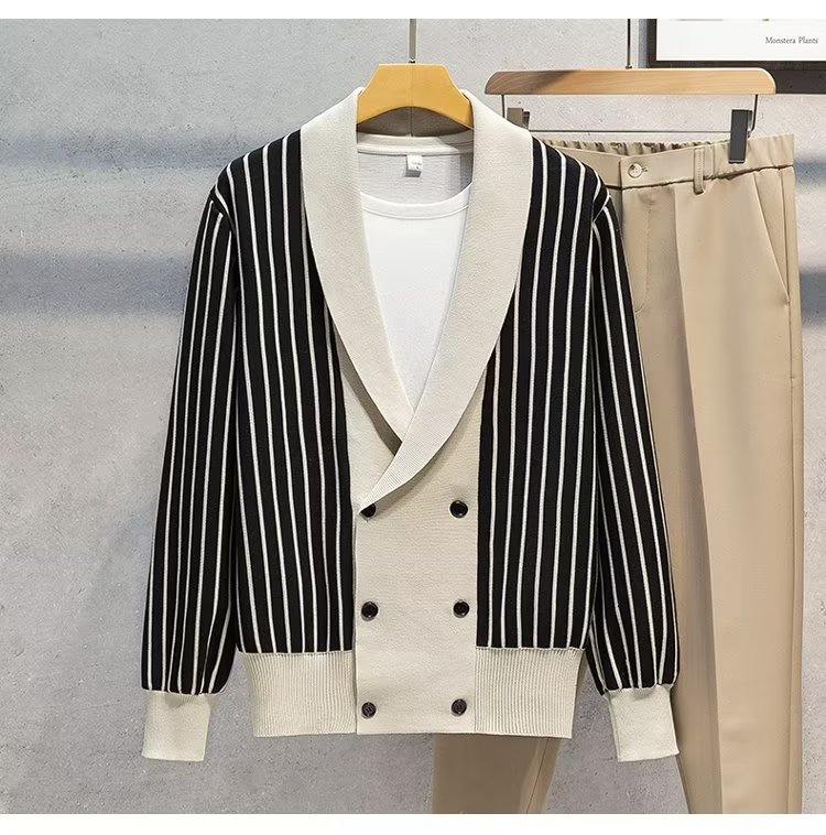 가벼운 성숙한 스타일 가을과 겨울 새로운 카디건 남성 영국 복고풍 프레피 스타일 니트 코트 대비 컬러 세트 칼라 스웨터스토어 가기