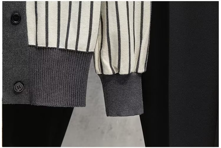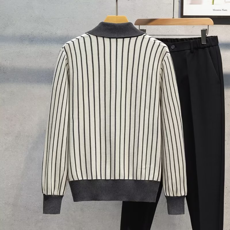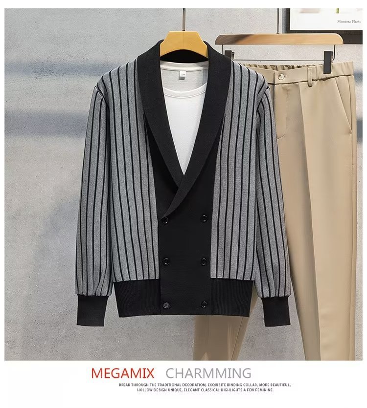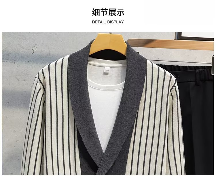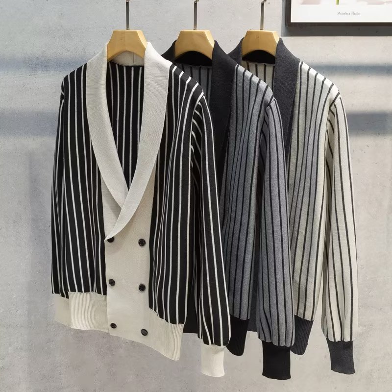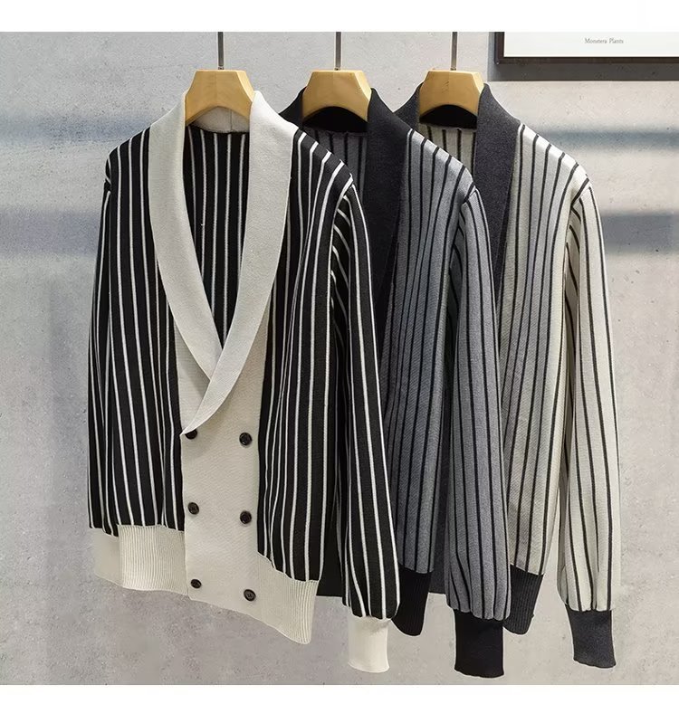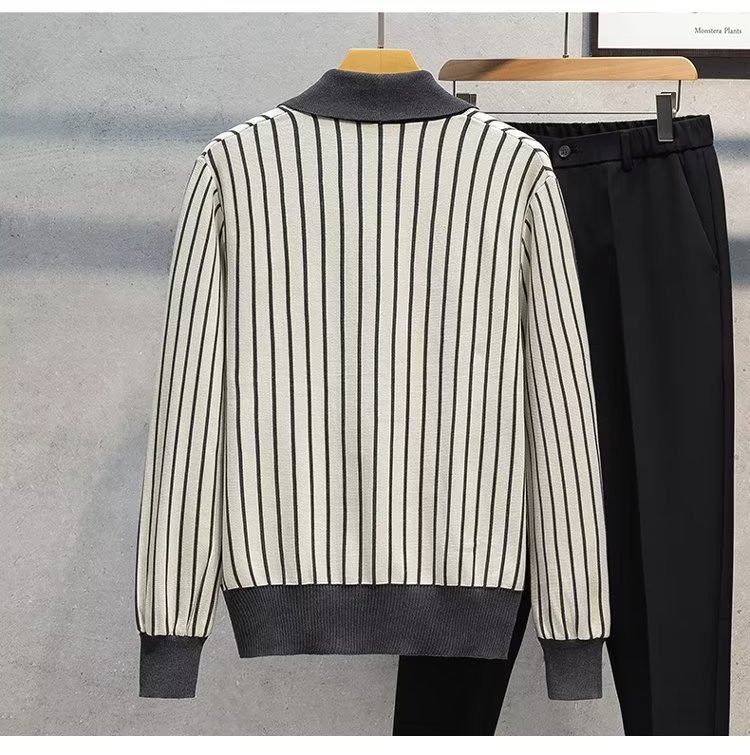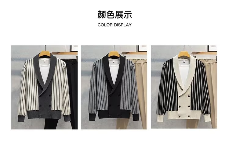 가벼운 성숙한 스타일 가을과 겨울 새로운 카디건 남성 영국 복고풍 프레피 스타일 니트 코트 대비 컬러 세트 칼라 스웨터스토어 가기