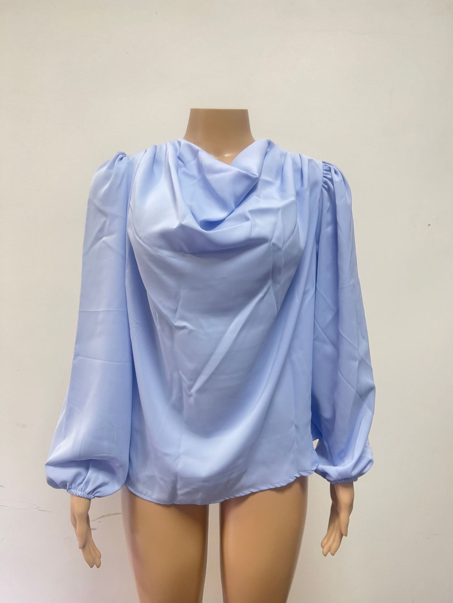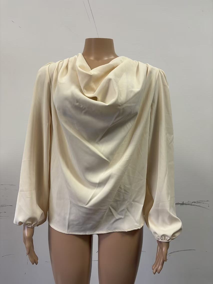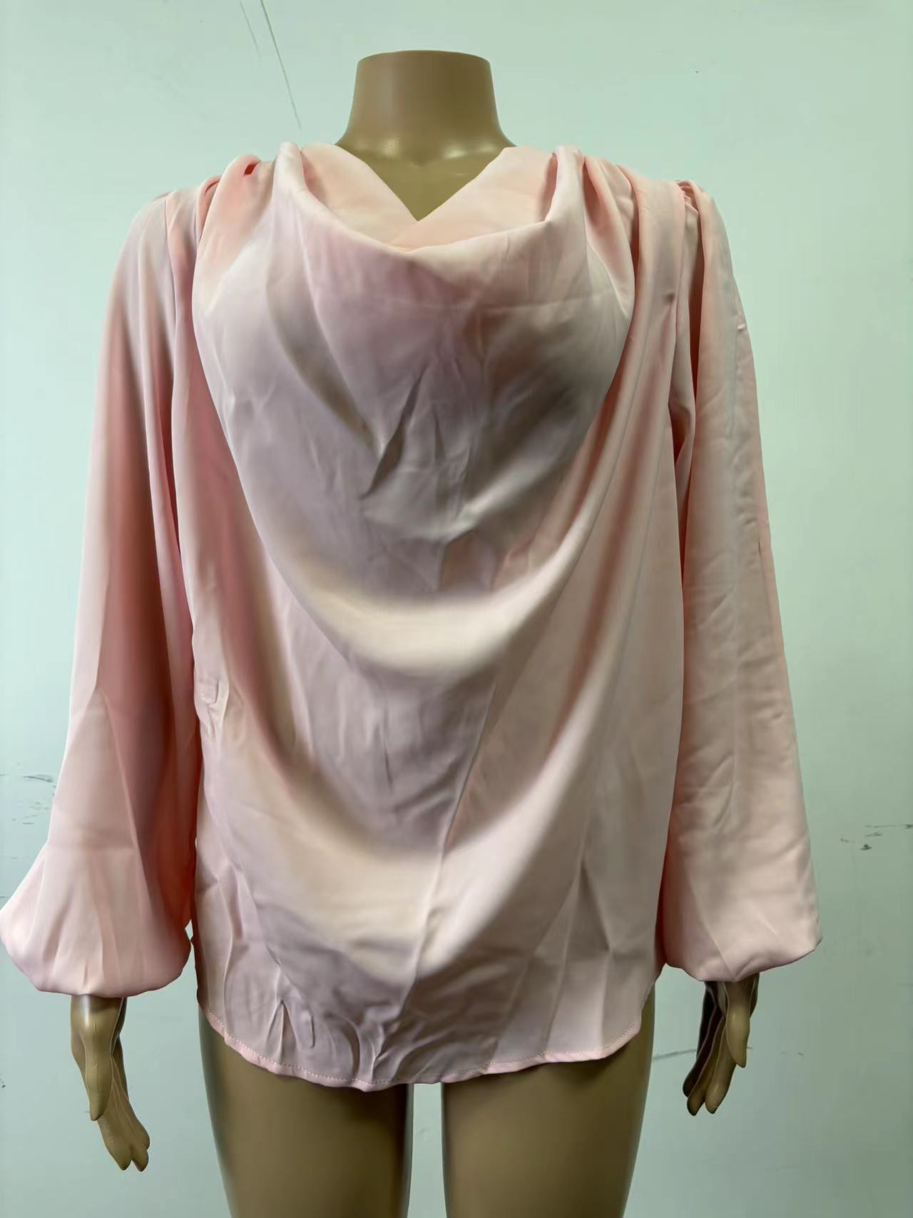 2026 크로스보더 위시 아마존 신상 유럽 및 미국 스타일 쉬폰 긴팔 셔츠 루즈핏 드레이프 V넥 탑 티셔츠 여성복스토어 가기