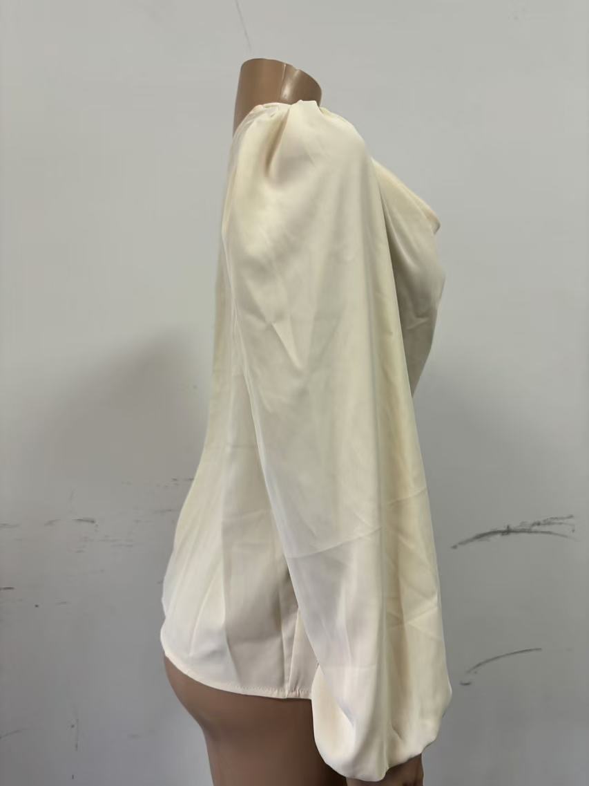 2026 크로스보더 위시 아마존 신상 유럽 및 미국 스타일 쉬폰 긴팔 셔츠 루즈핏 드레이프 V넥 탑 티셔츠 여성복