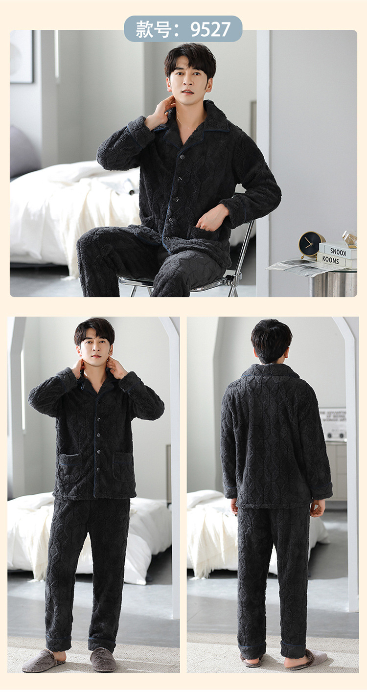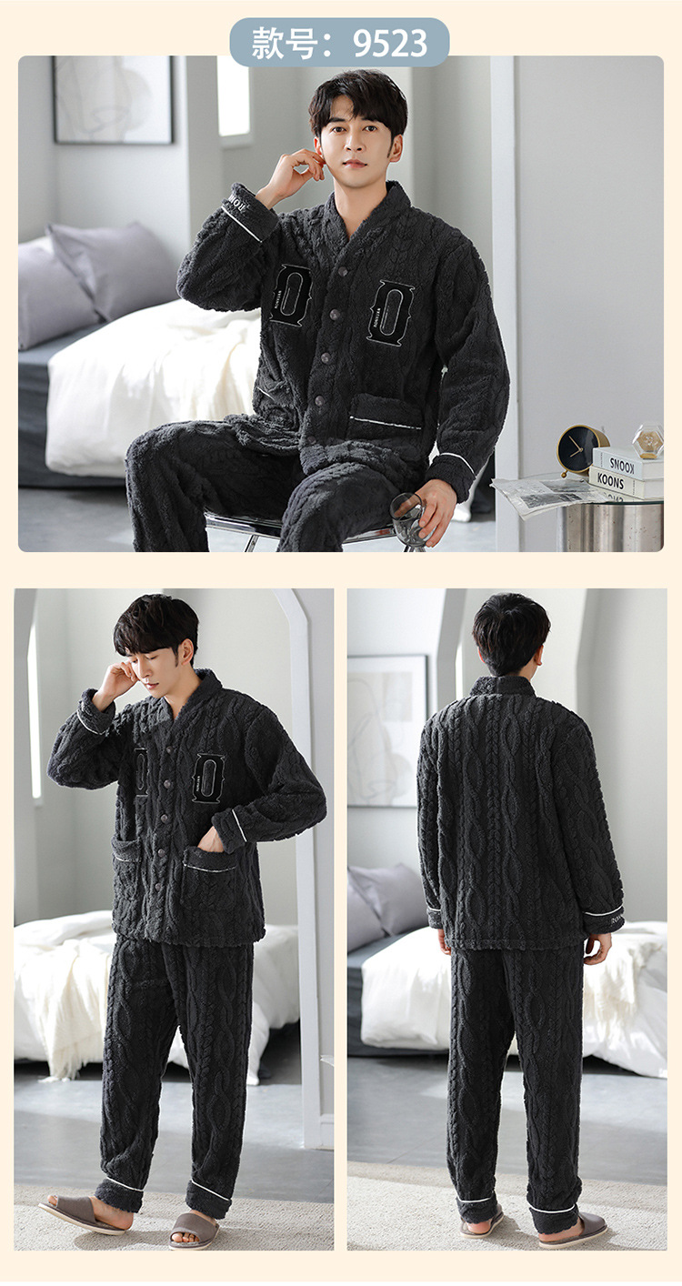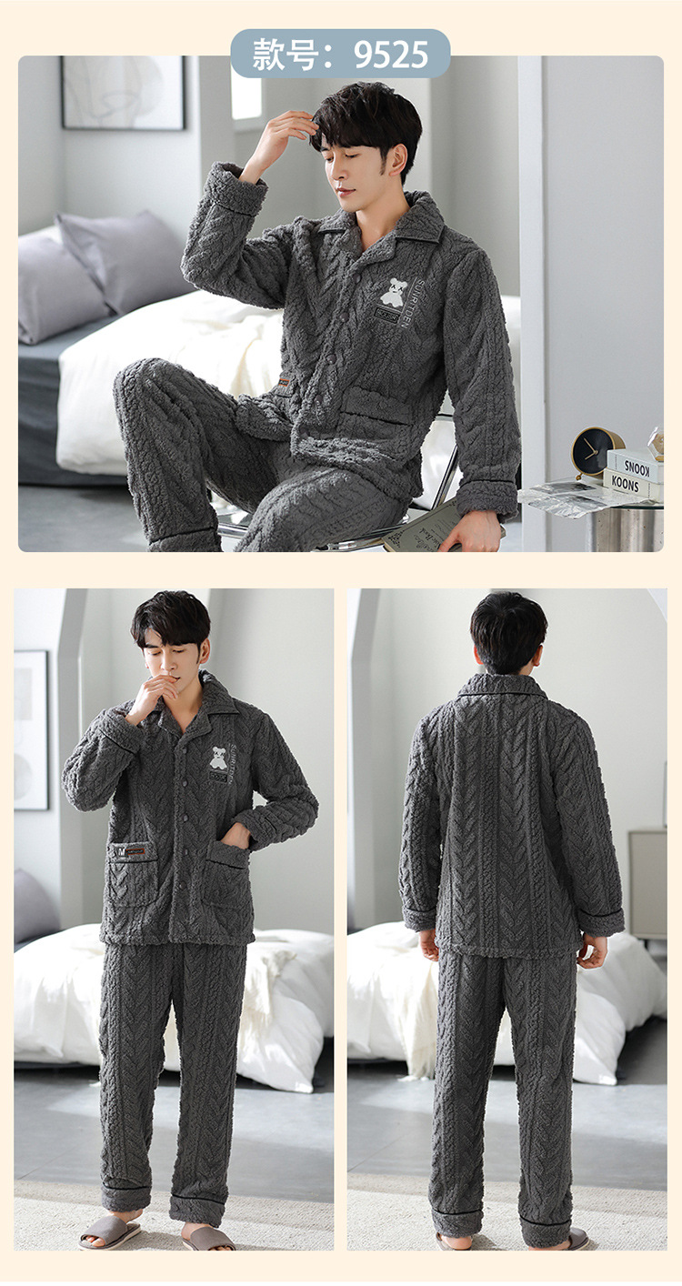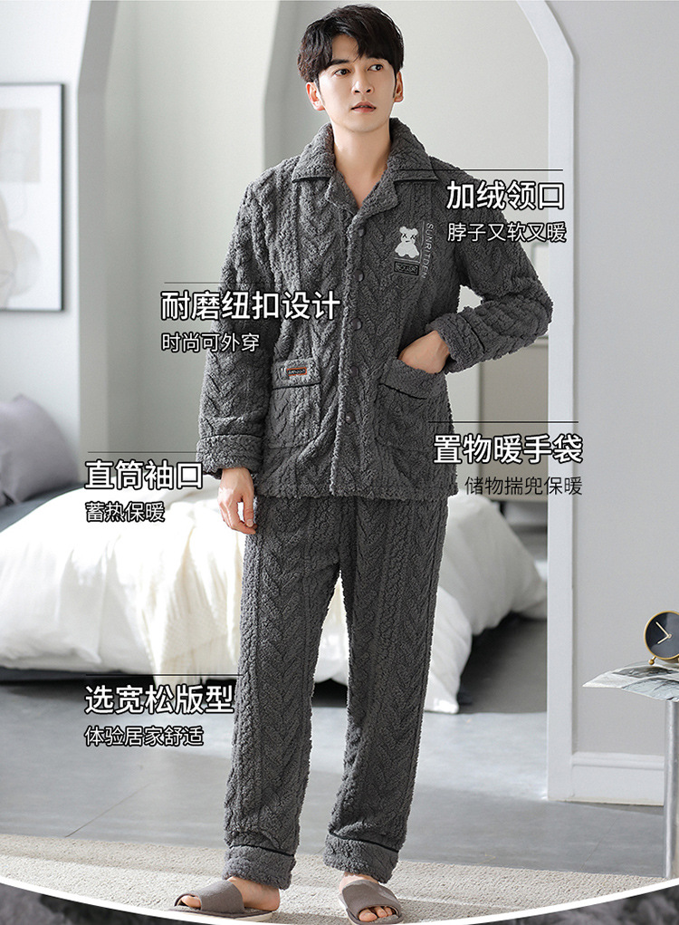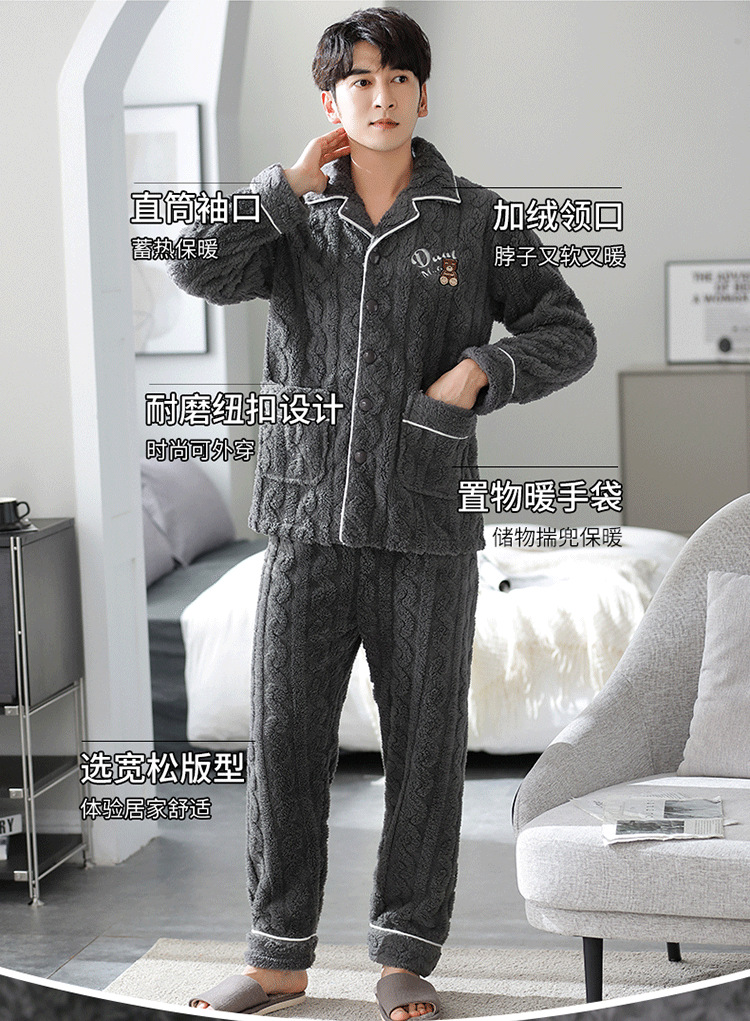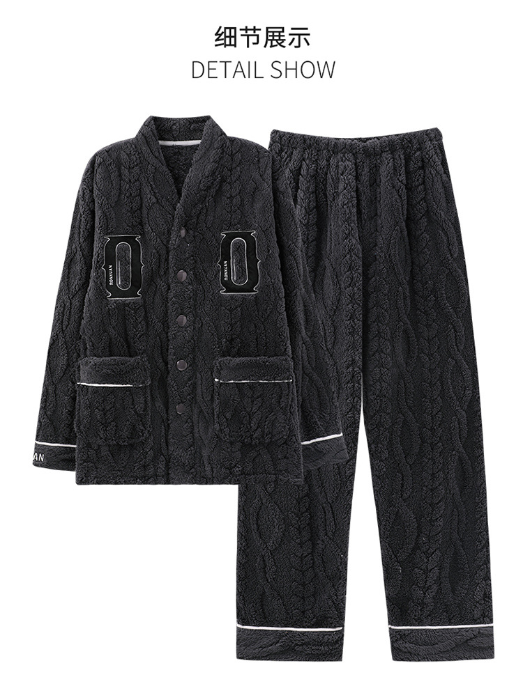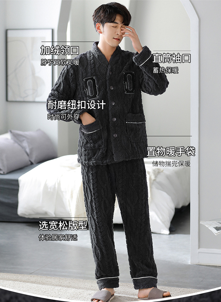 [깨진 크기 복지] 가을과 겨울 두꺼운 남성 플란넬 파자마 카디건 옷깃 따뜻한 산호 양털 홈 옷스토어 가기