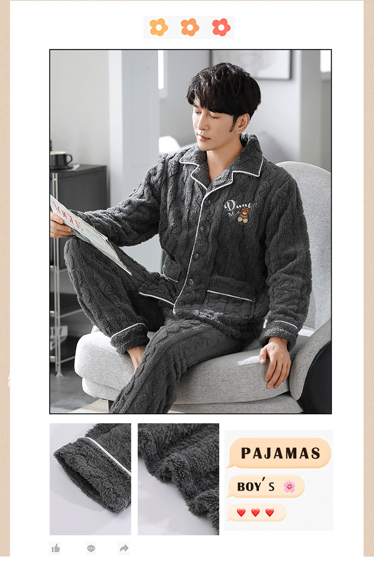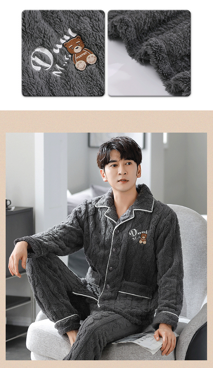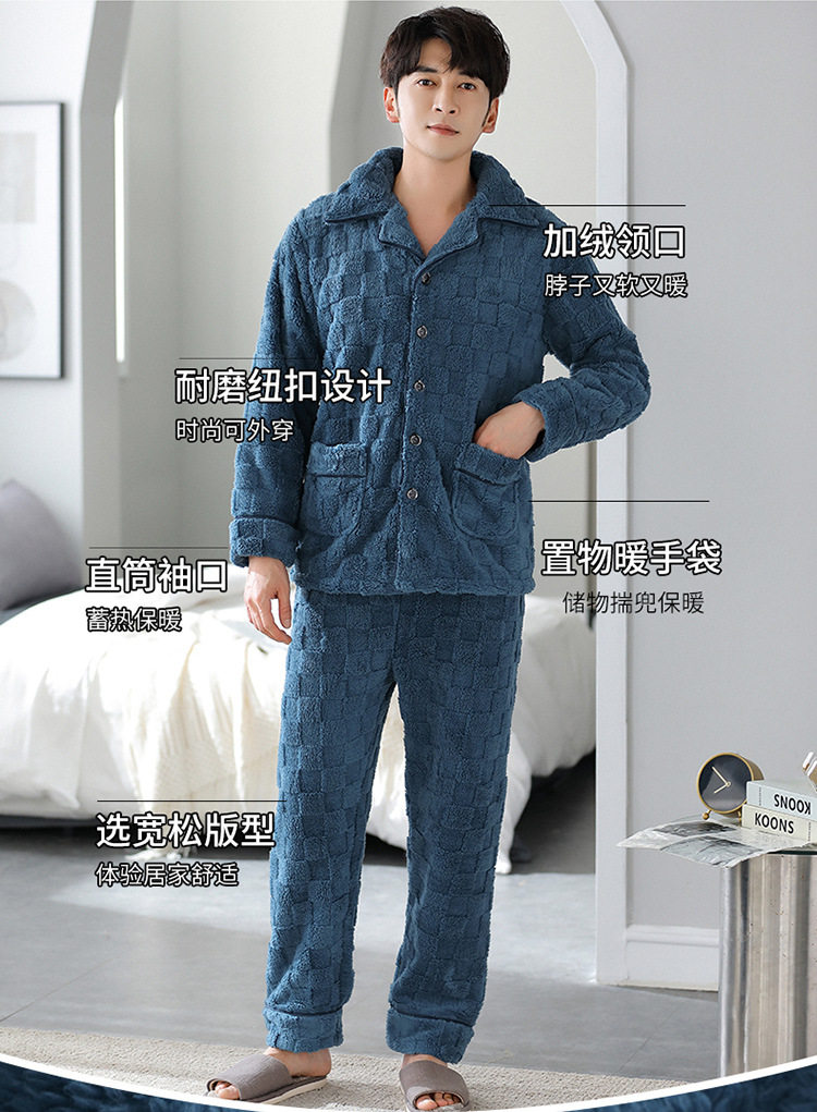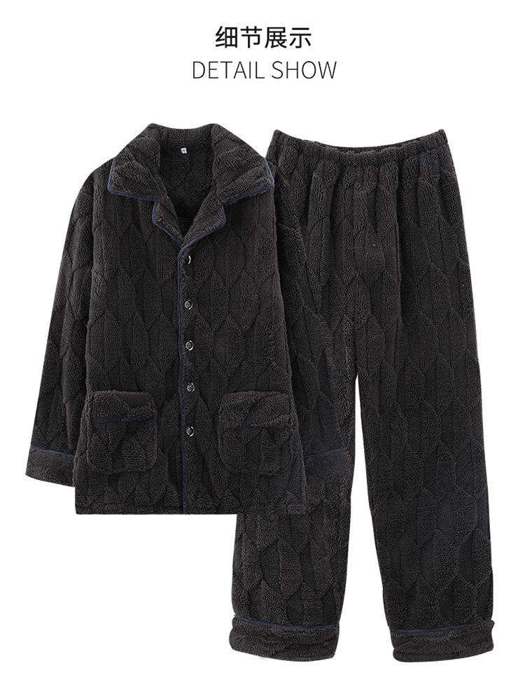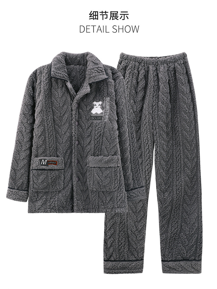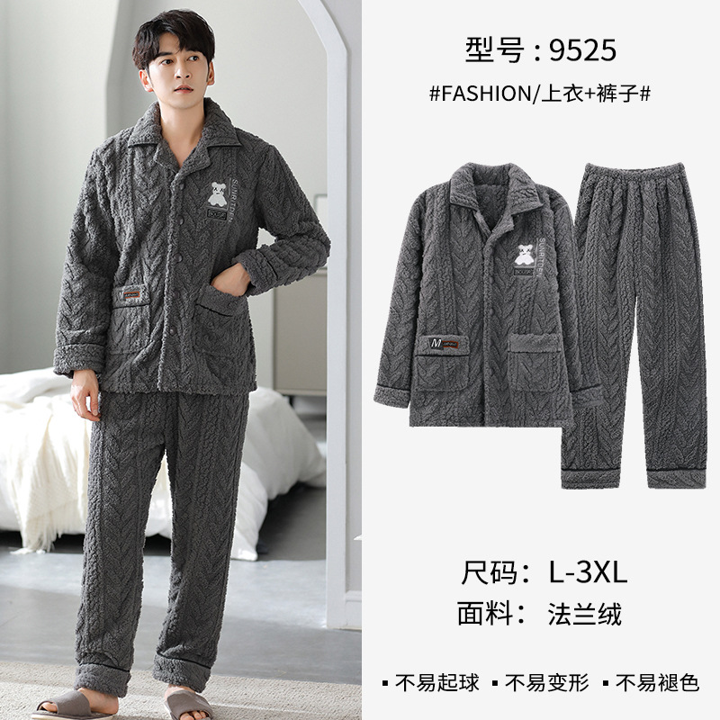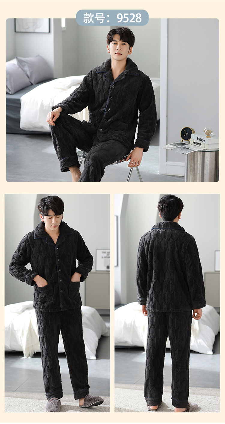[깨진 크기 복지] 가을과 겨울 두꺼운 남성 플란넬 파자마 카디건 옷깃 따뜻한 산호 양털 홈 옷스토어 가기