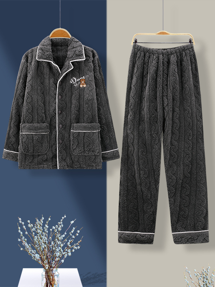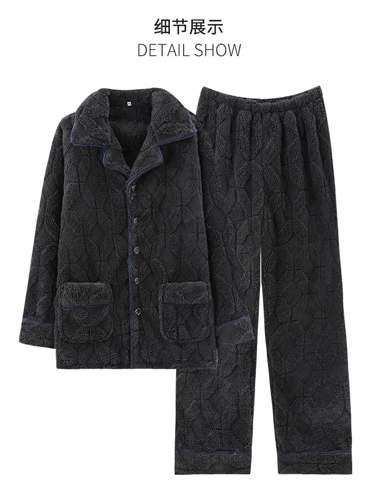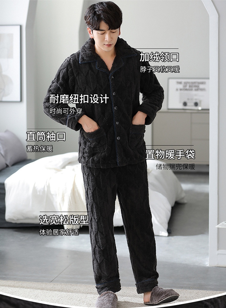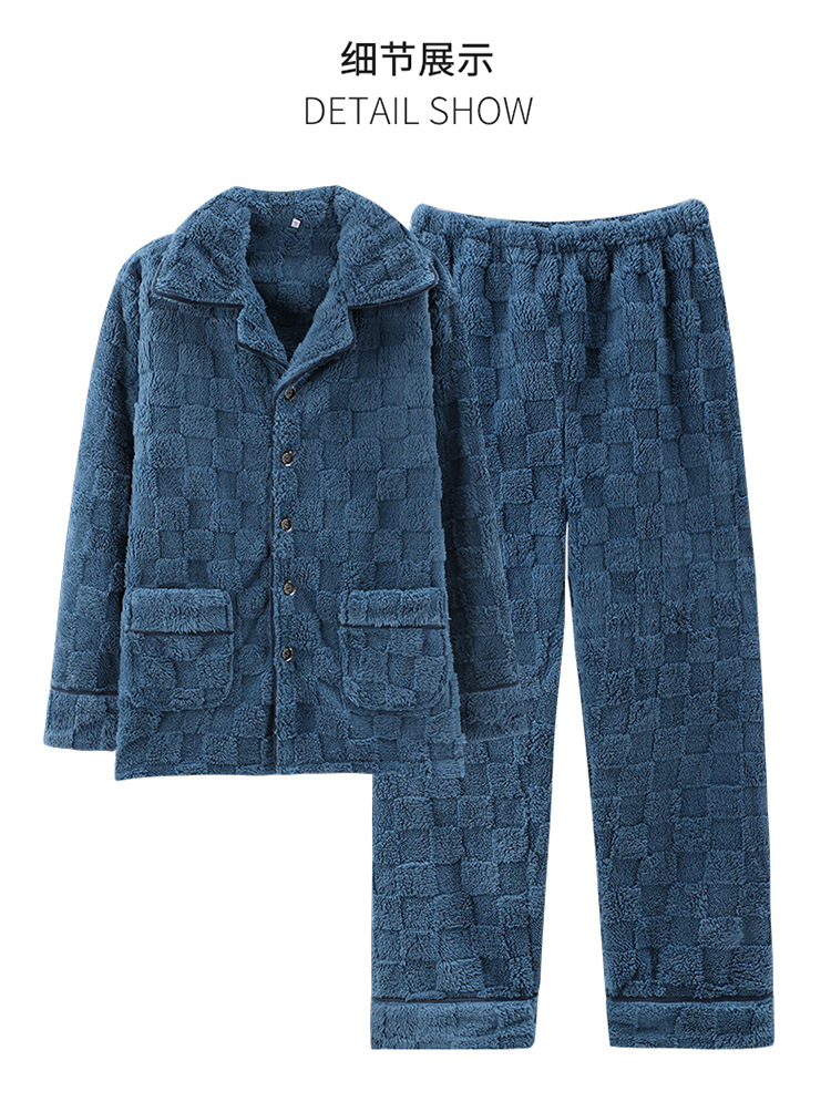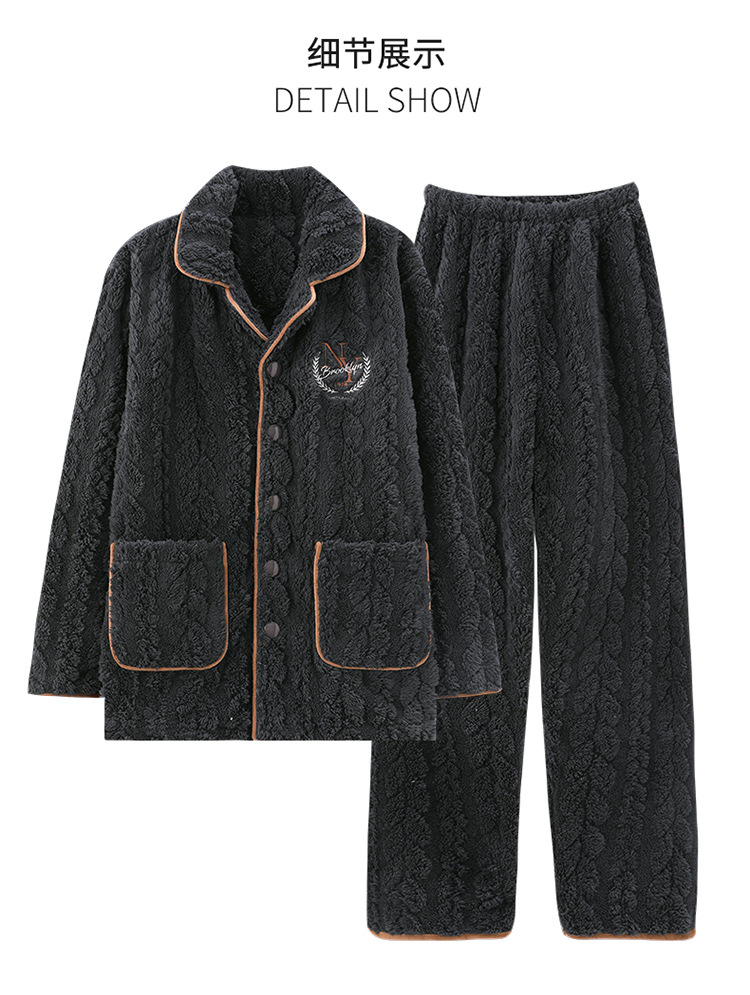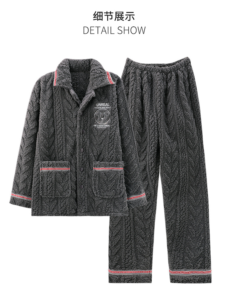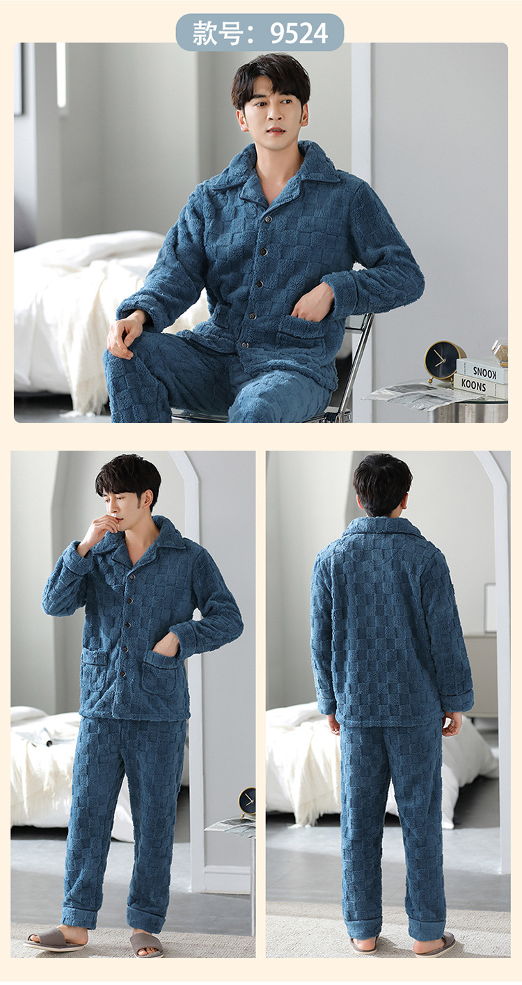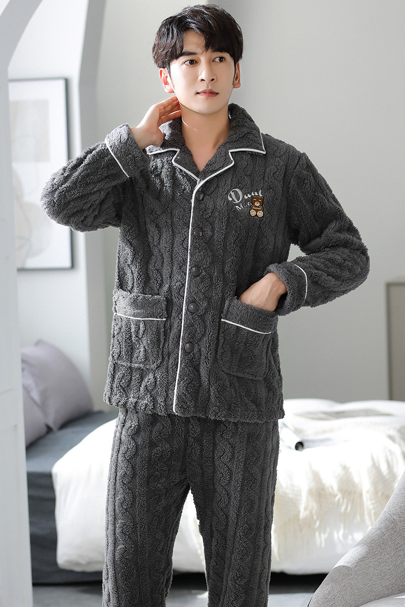 [깨진 크기 복지] 가을과 겨울 두꺼운 남성 플란넬 파자마 카디건 옷깃 따뜻한 산호 양털 홈 옷스토어 가기